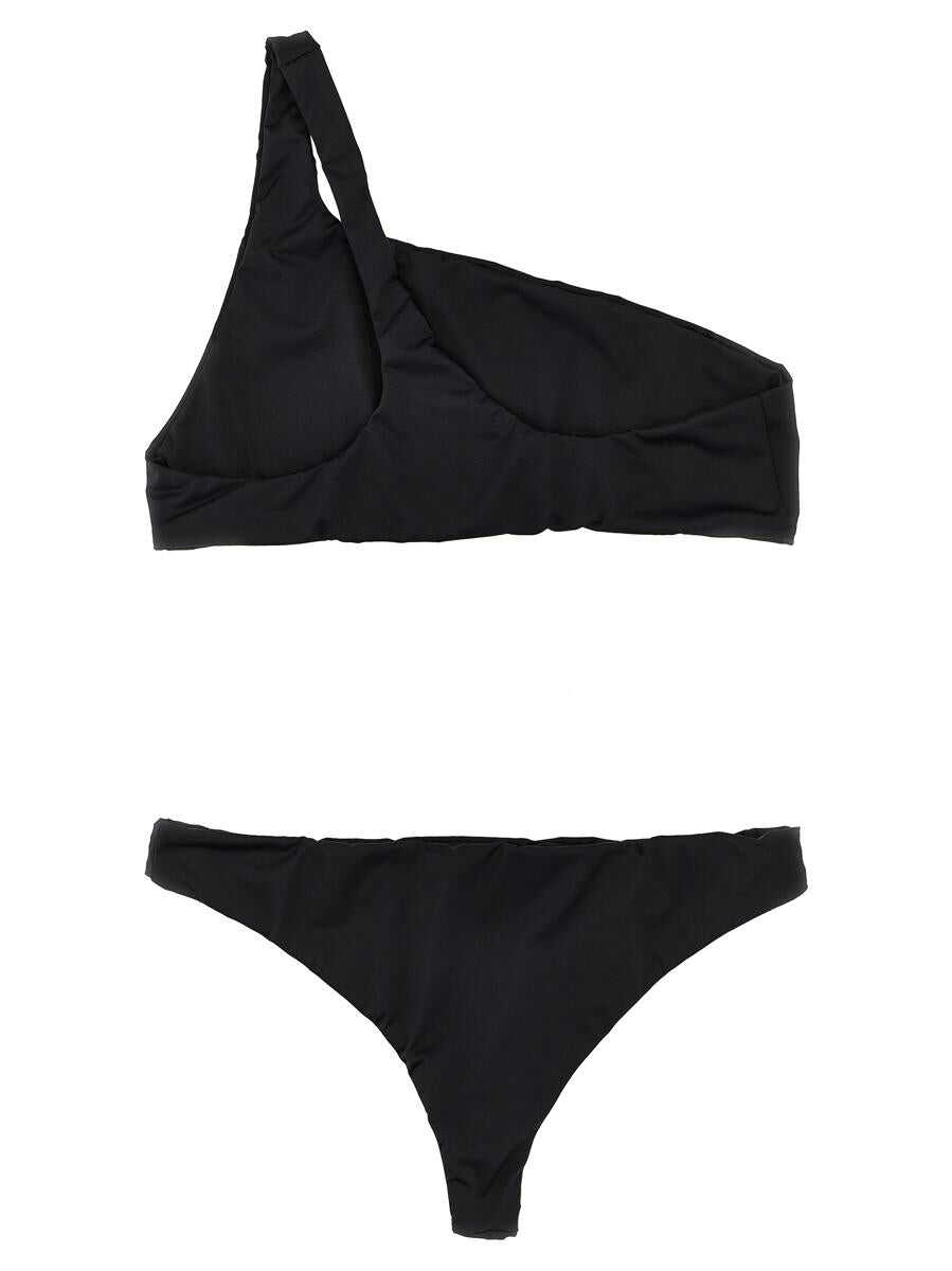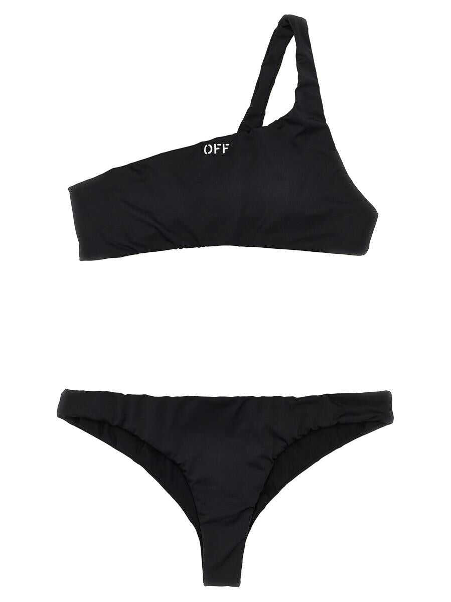 'Off Stamp' bikini in stretch fabric with one-shoulder top with logo embroidery, high-cut bottoms