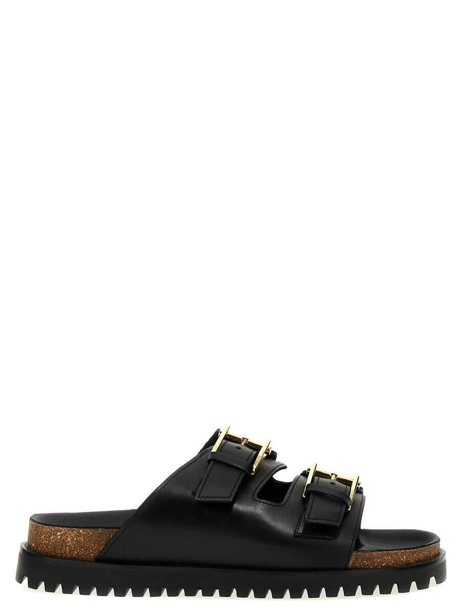 Leather sandals, straps with adjustable buckles, rubber sole