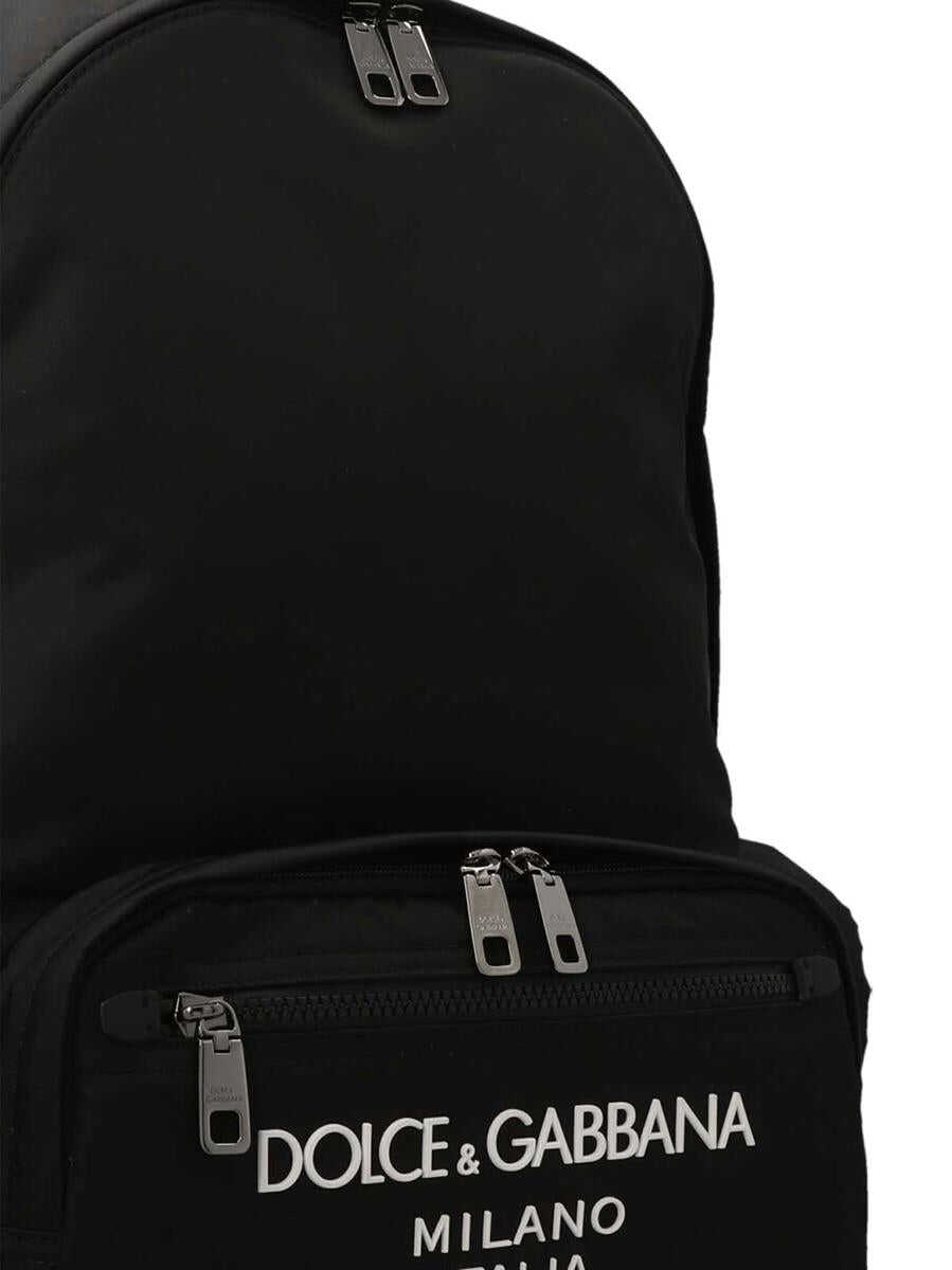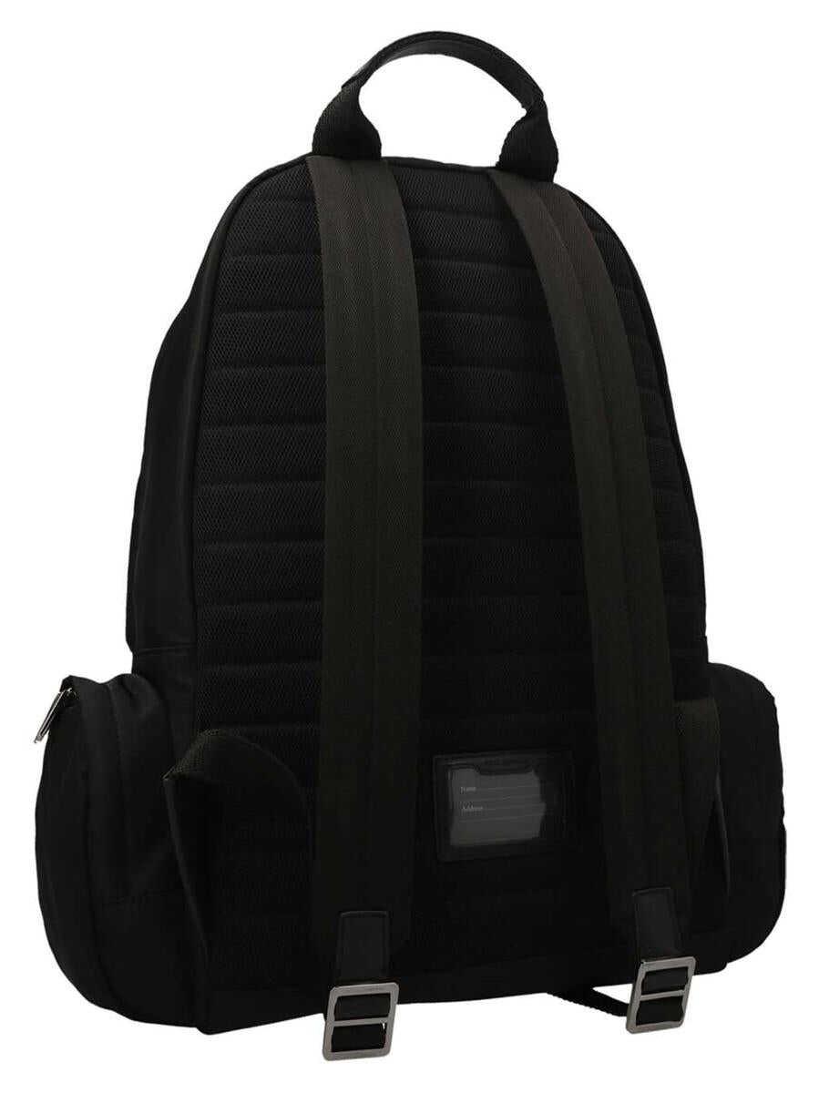 Nylon backpack with front logo, zip closure, outer pockets, adjustable shoulder straps