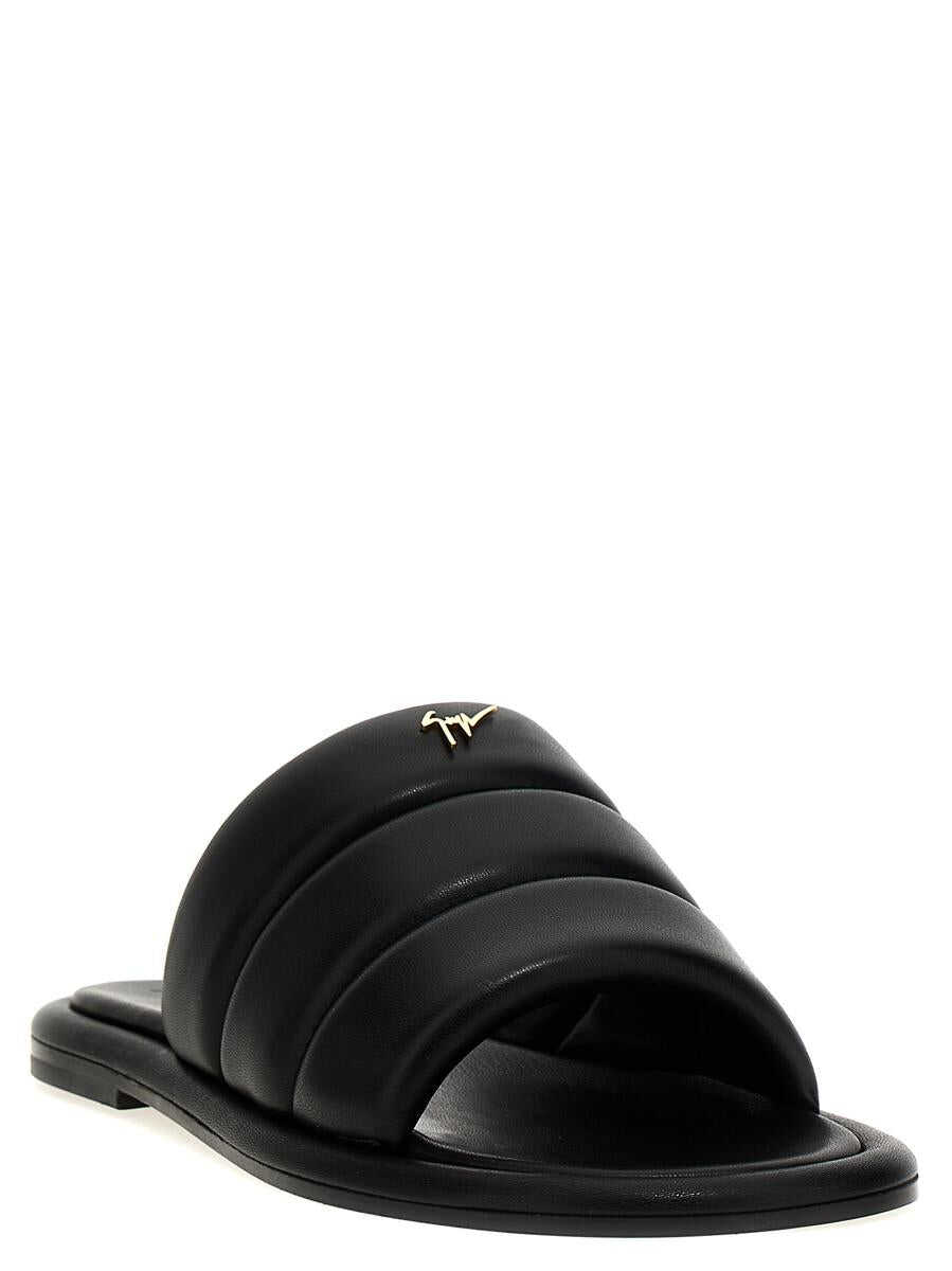 'Kanot' leather sandals with metal logo appliqué and leather sole