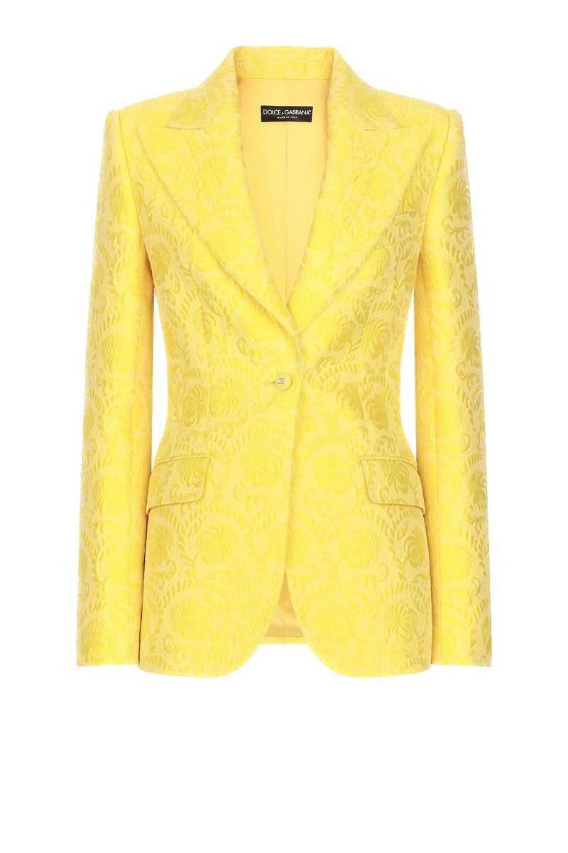 Single-breasted turlington blazer in floral brocade fabric in cotton and silk blend. Single logo button closure, flap pockets, maxi lapels, double split on the back