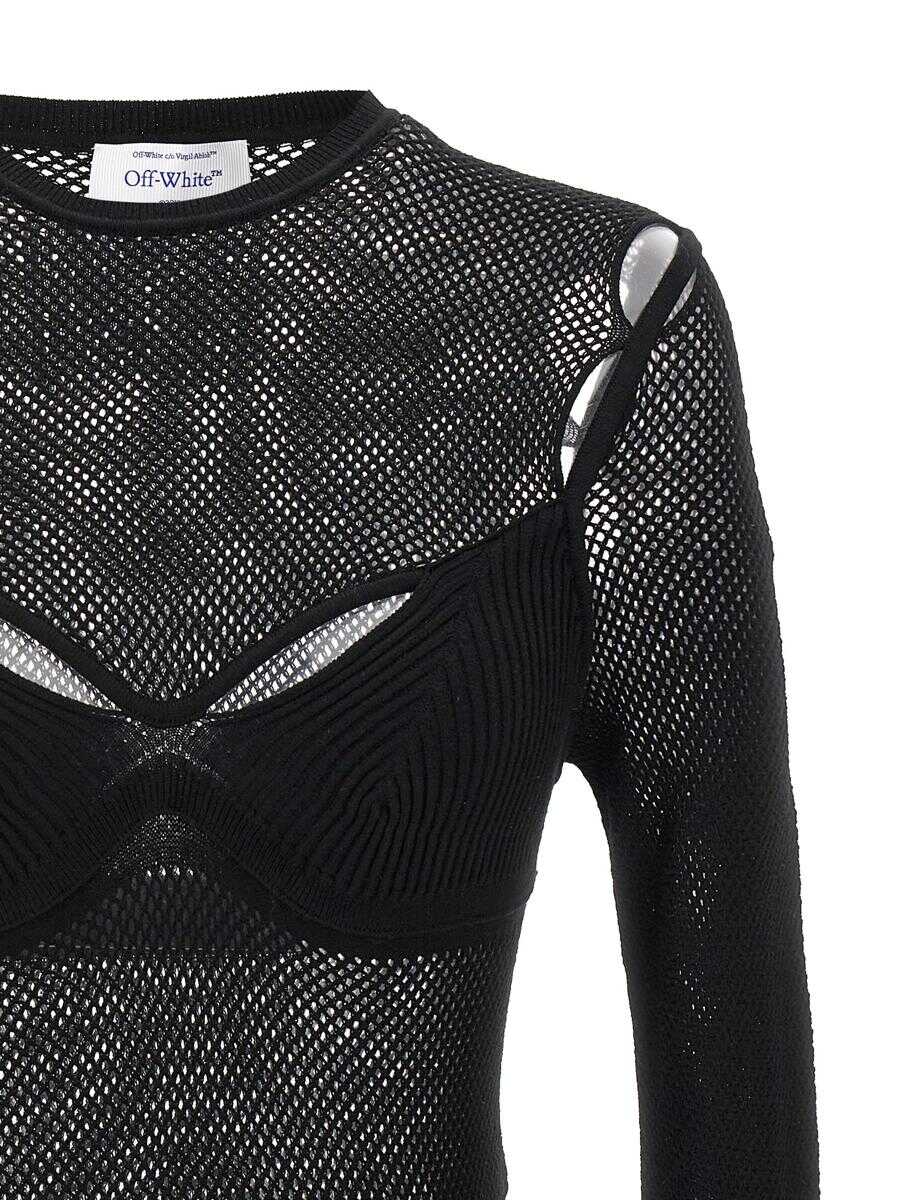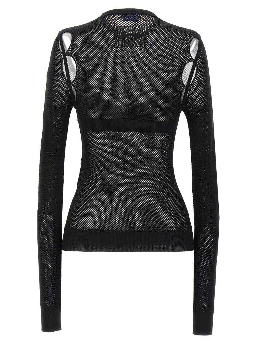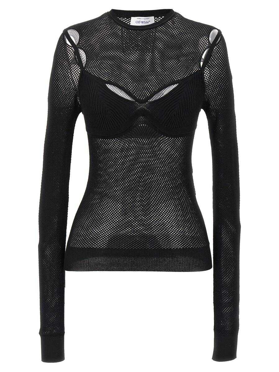 'Net Arrow Bralette' top in stretch mesh fabric with cut-out details, crew neck, long sleeves