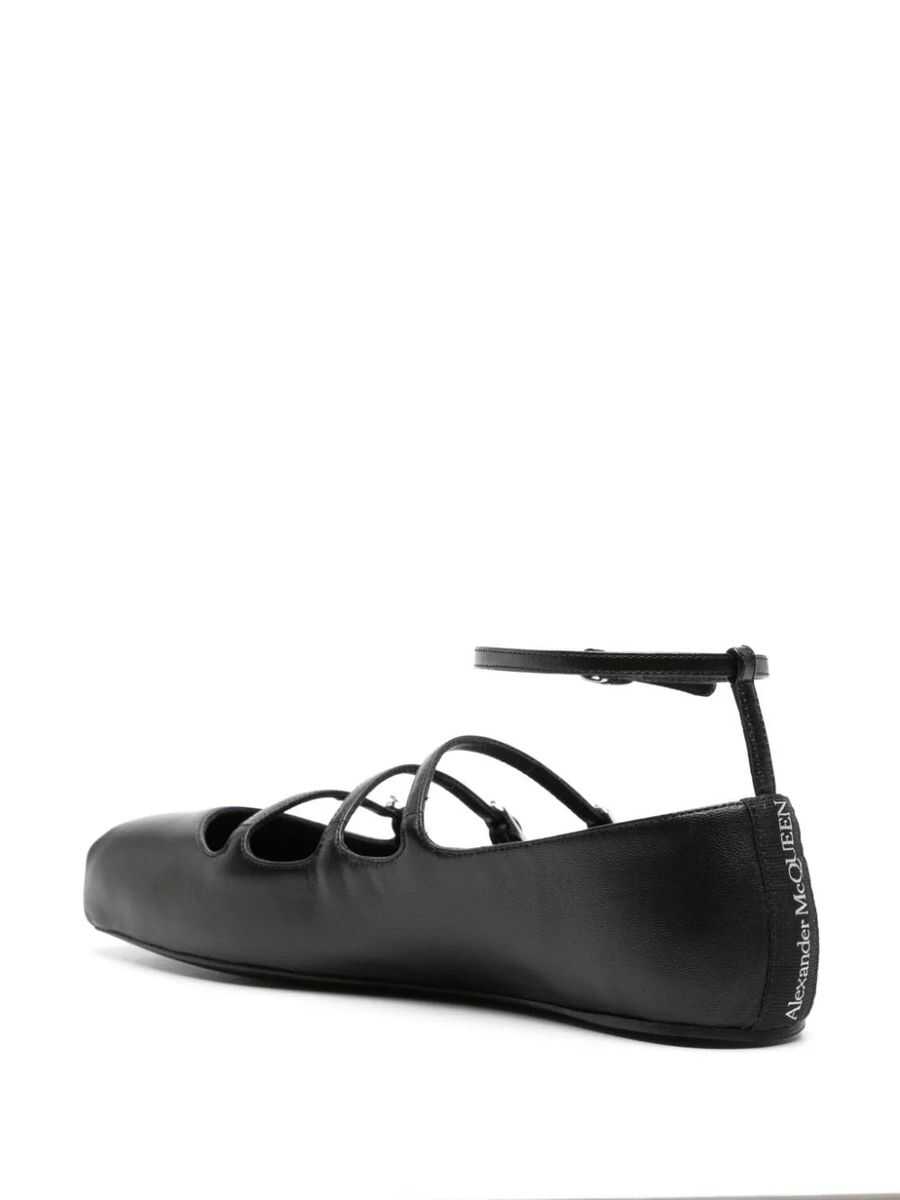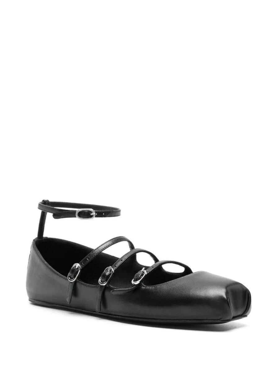Leather ballet flats with adjustable straps, leather sole