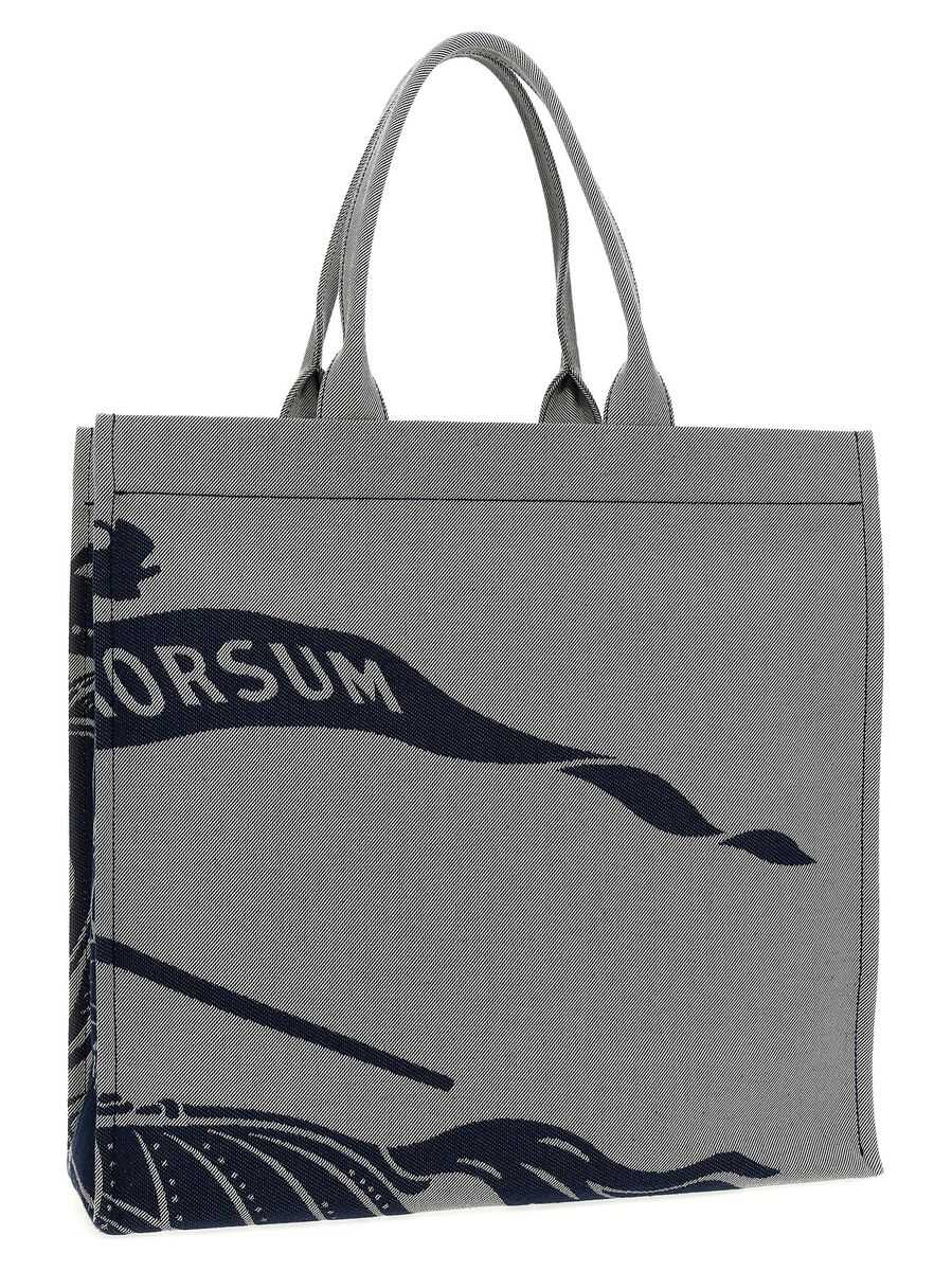 'Square' canvas shopping bag with 'EKD' logo print, double handle, removable inner zip pouch
