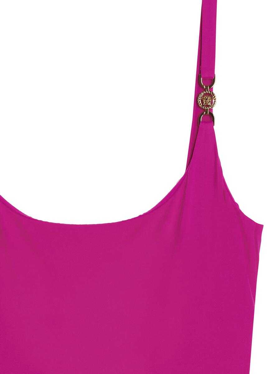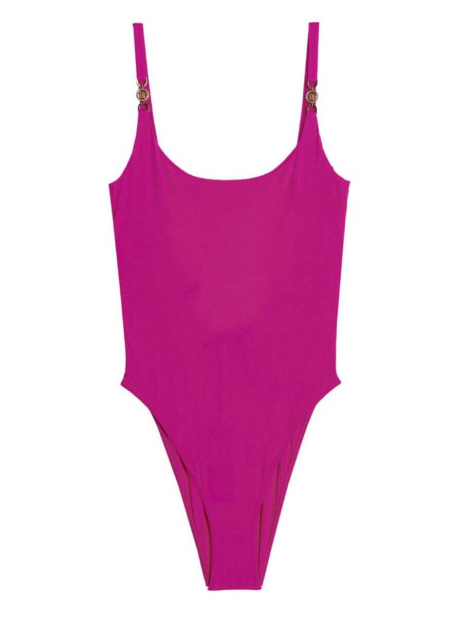 'Medusa' lycra swimsuit with plunge neck and metal detail on the shoulders