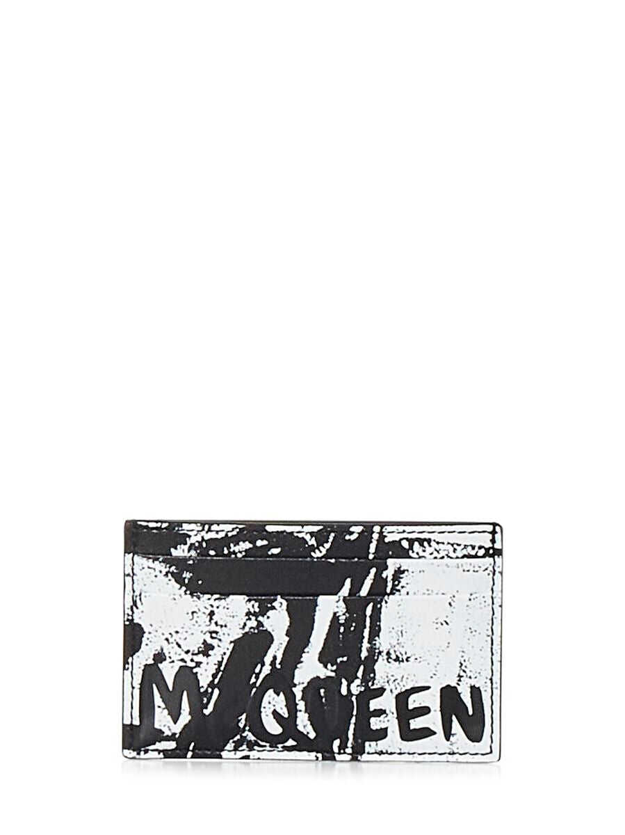 'Graffiti McQueen' leather card holder with all-over tone-on-tone print