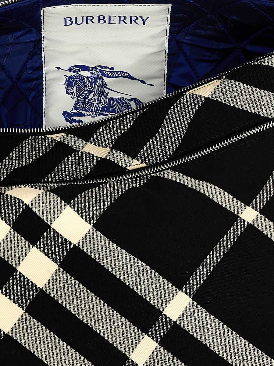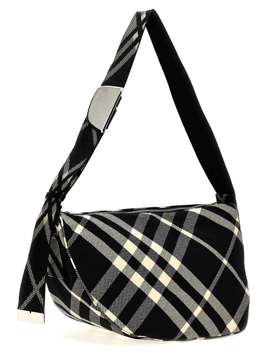 'Shield' messenger bag in check fabric with adjustable shoulder strap with brushed metal buckle and logo engraving, outer zip pocket