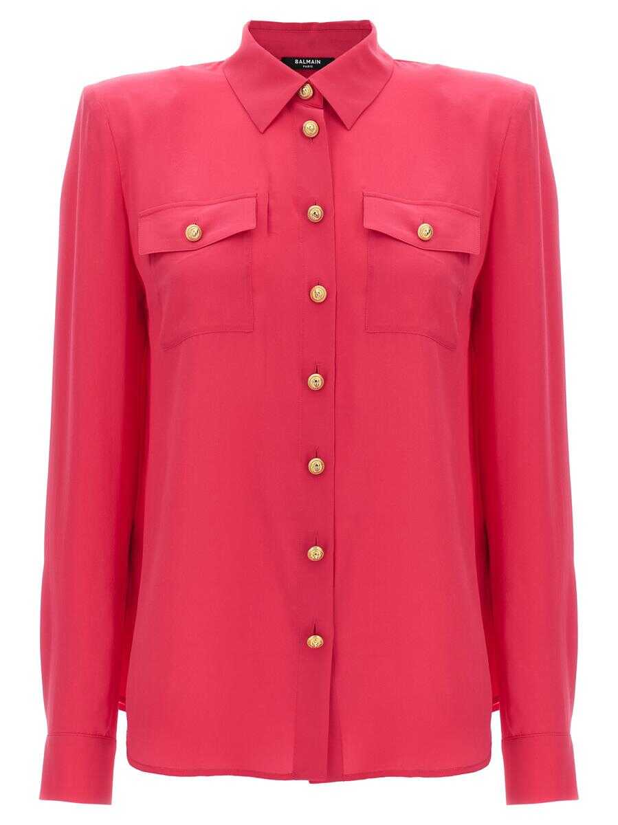 Silk shirt with logo buttons, and pockets