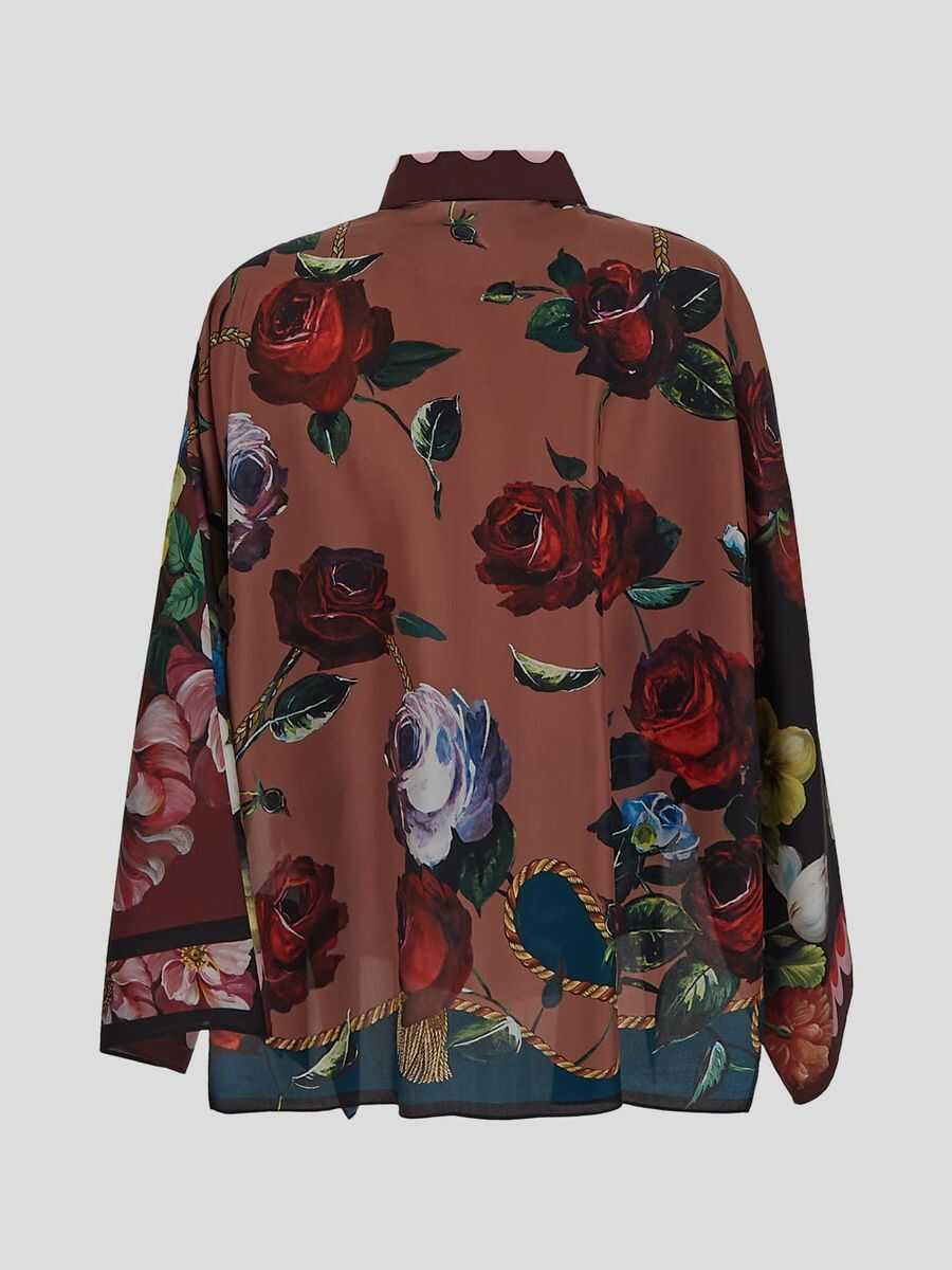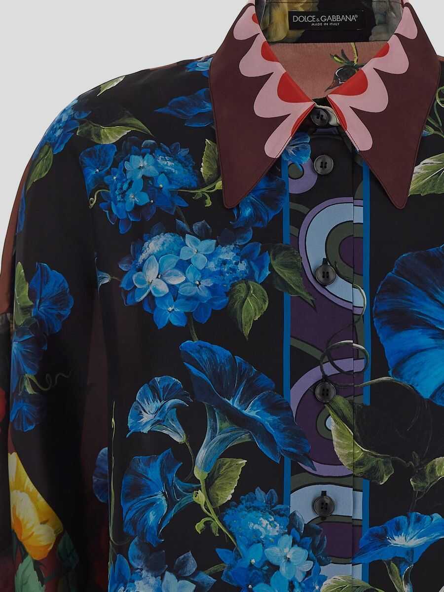 Silk shirt with all-over floral print, button closure, pointed collar
