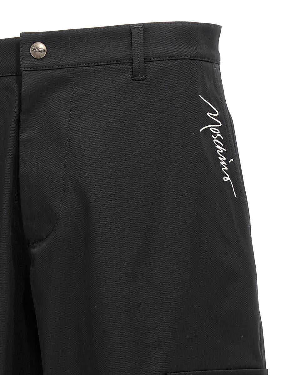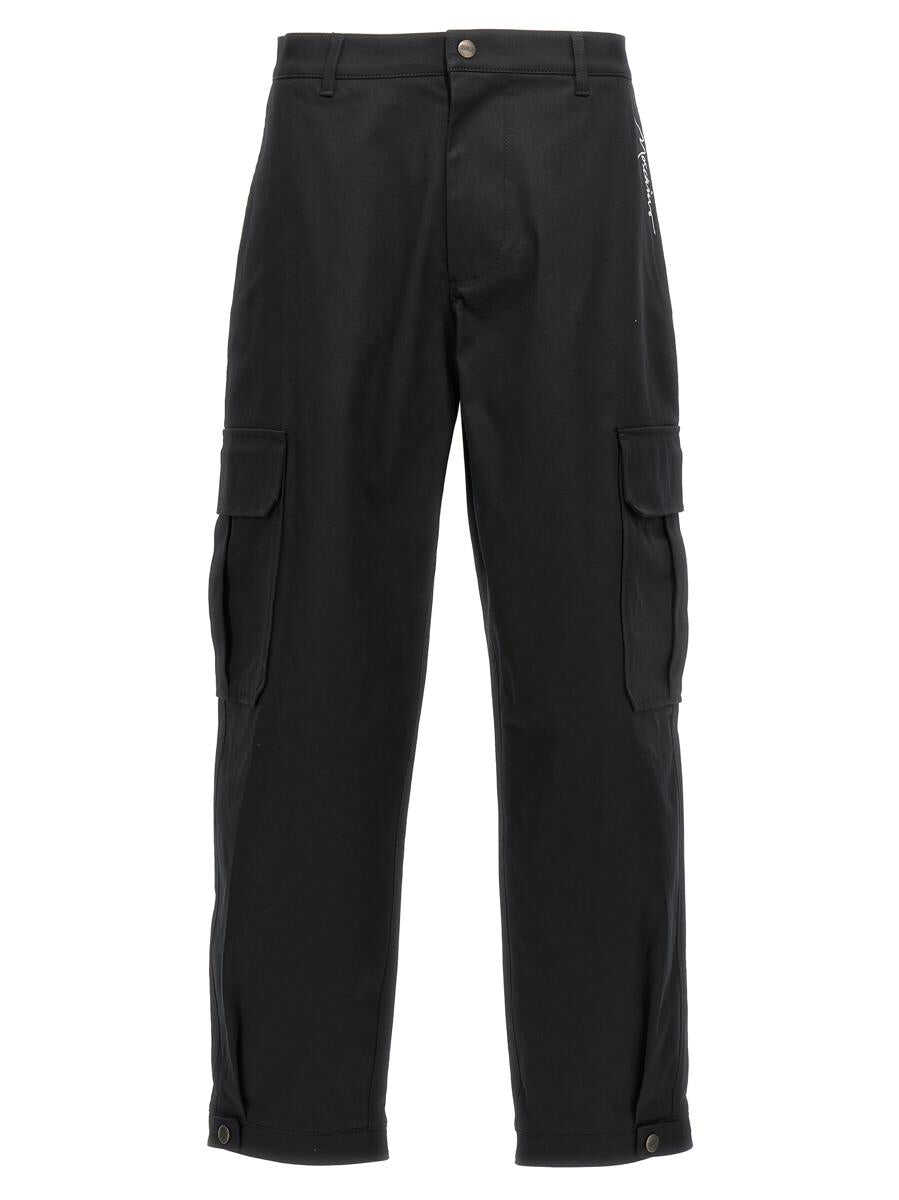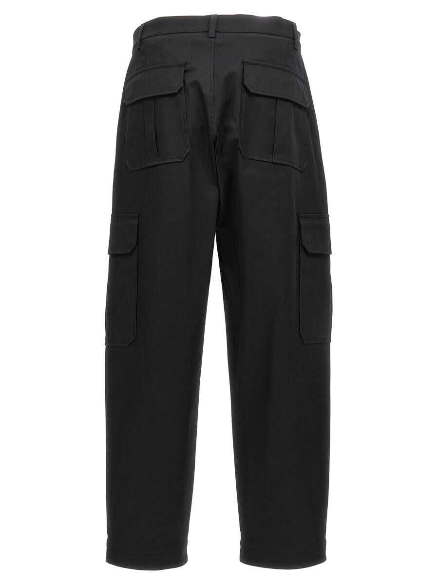 Cotton pants with logo embroidery, cargo model with multi pockets. Zip and button closure