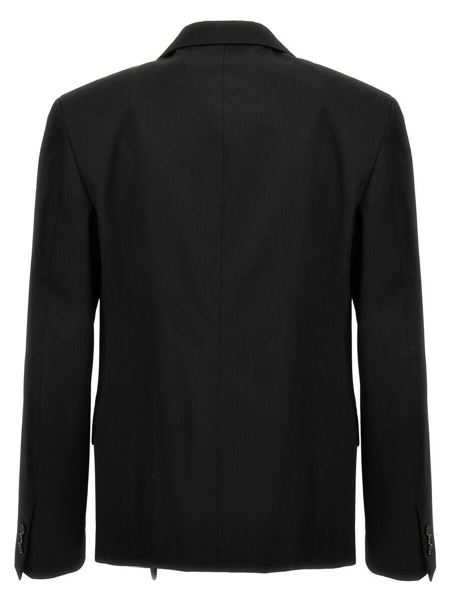 'OW Embroidery' single-breasted wool blazer with button closure, pockets, long sleeves, inner shoulder strap