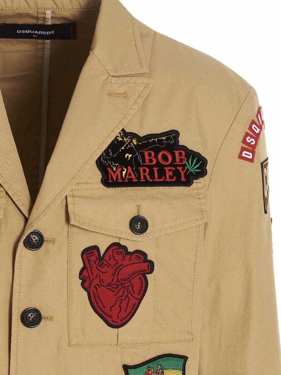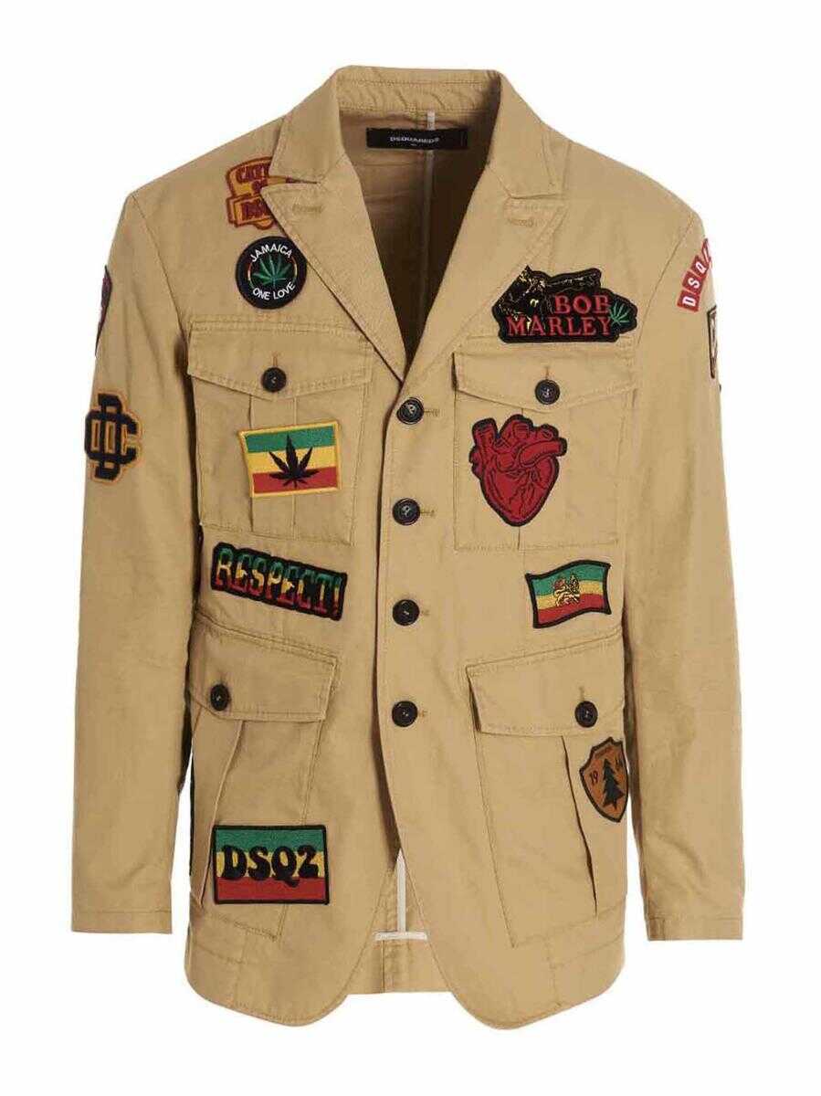 'Military' single-breasted cotton blazer with button closure, all-over patches, pockets, long sleeves, back vents.ts at the back