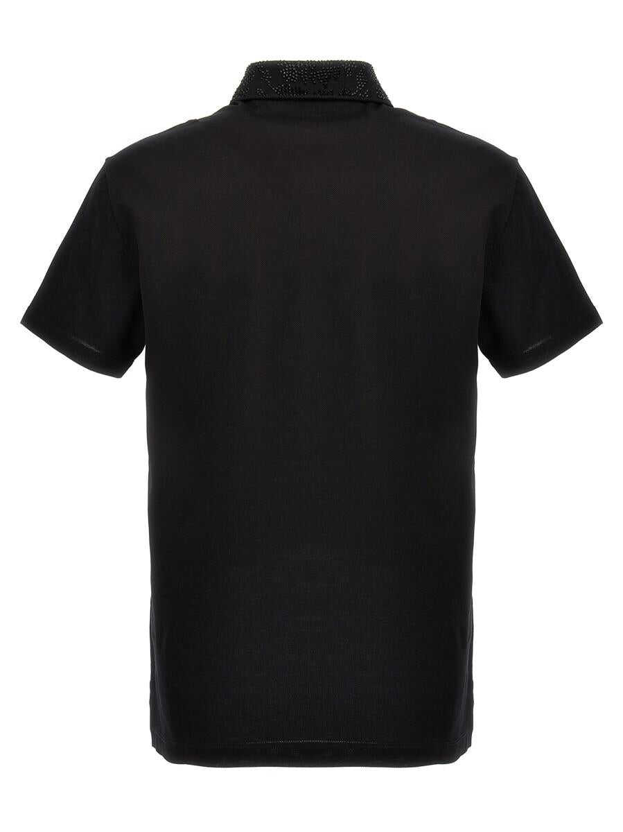 Piqué cotton polo shirt with sequin appliqué on the collar, front logo embroidery and short sleeves