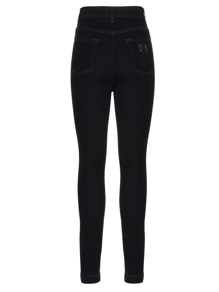 'Grace’ five-pocket cotton denim jeans with a zip and button and a logo tag on the back