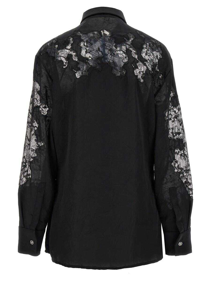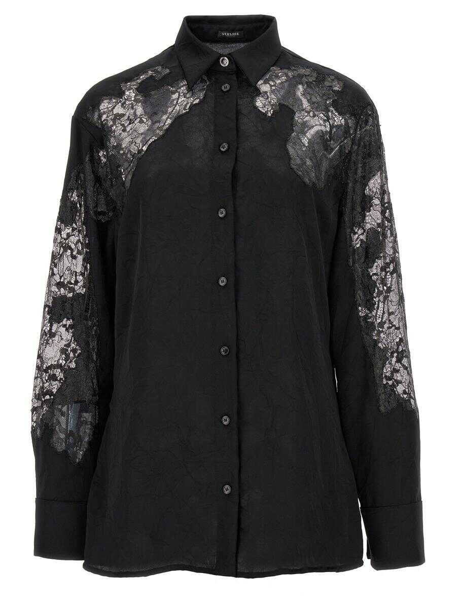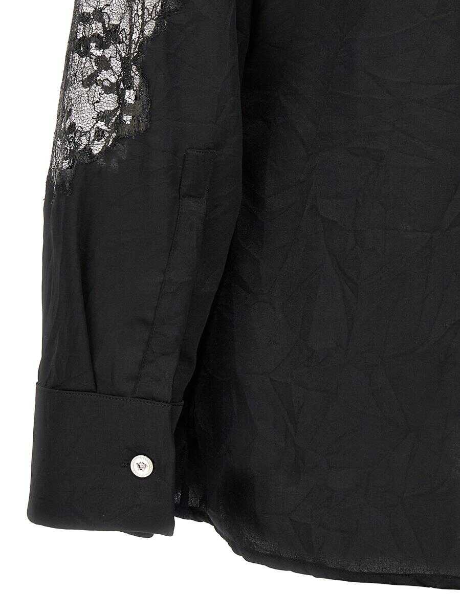 Recycled-effect satin shirt with lace inserts, long cuffed sleeves and a button closure