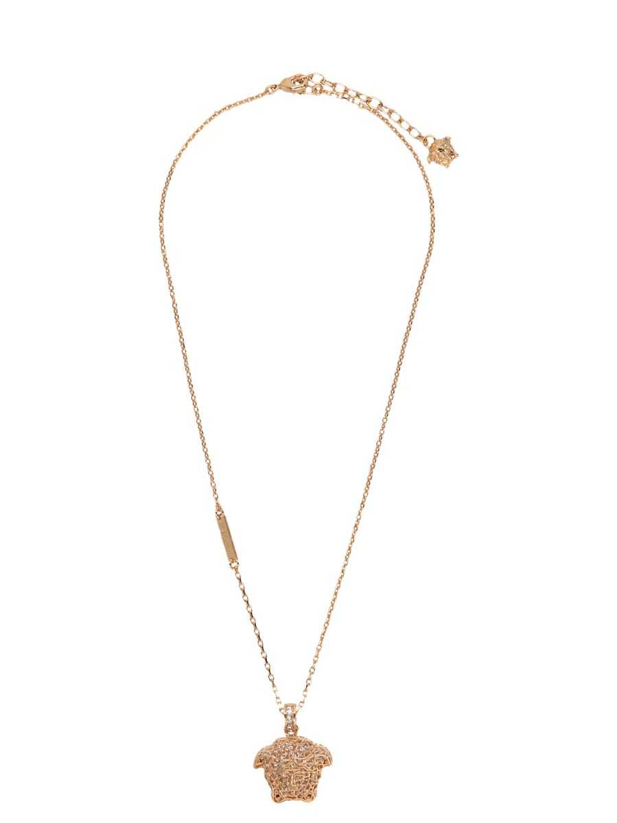 'Medusa' metal necklace with pendant embellished with rhinestones
