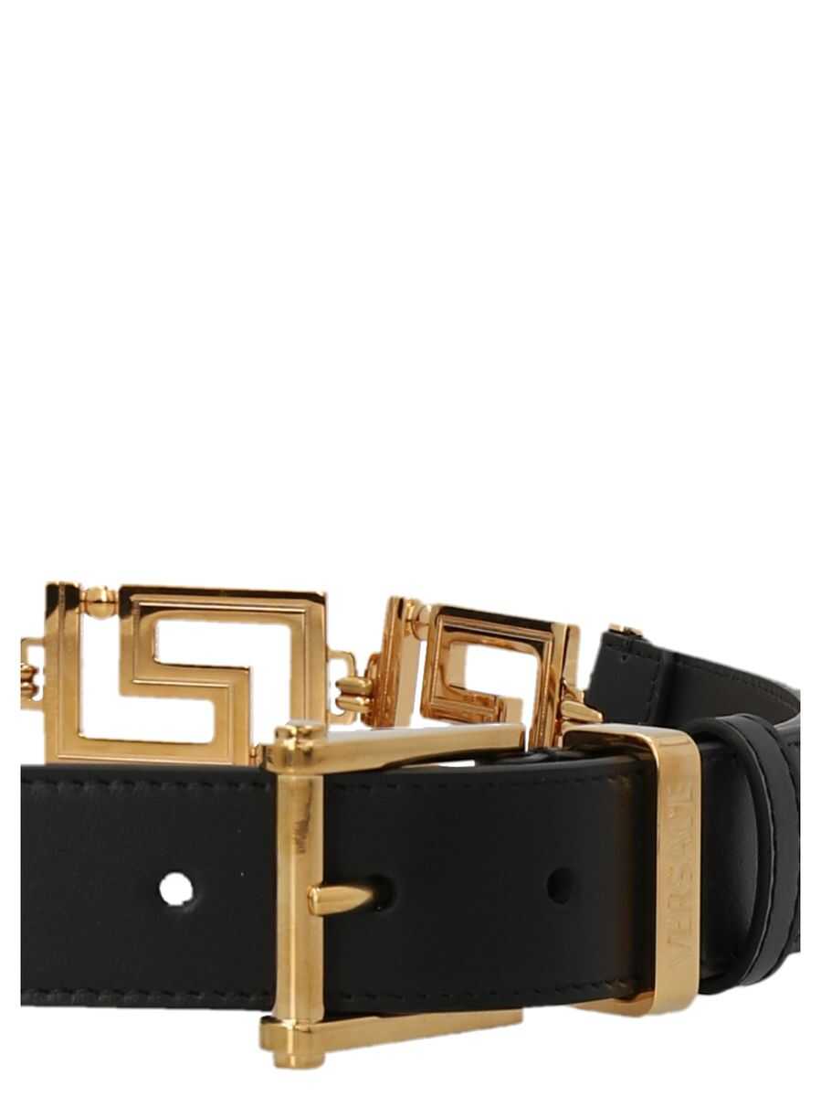 - Versace - Greek motif belt - Made of calf leather - Black - Gold finishes - Buckle closure - Women's