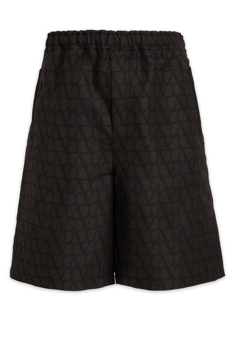 Silk faille bermuda shorts with all-over Toile Iconographe print, elastic and drawstring at the waist, zip closure and pockets