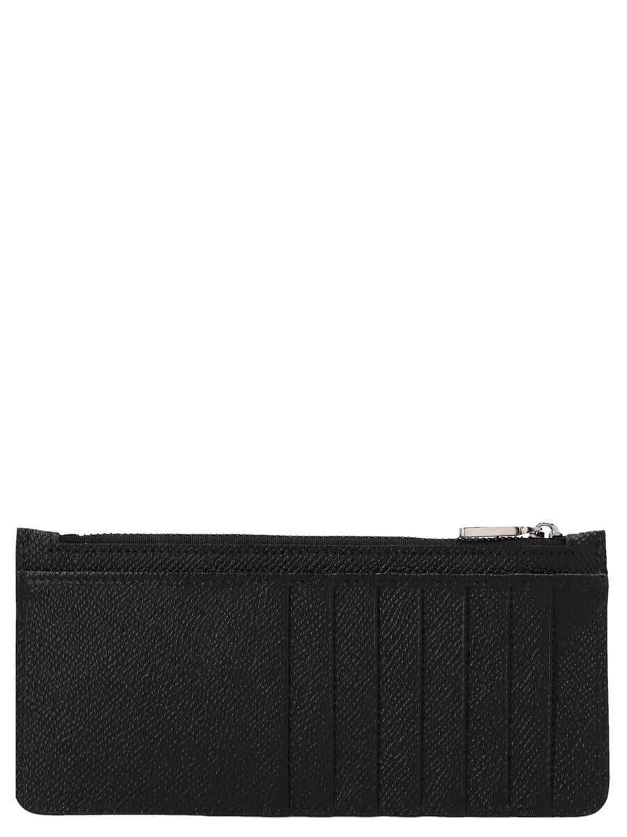 Dauphine leather wallet with a front logo plaque and a zip closure