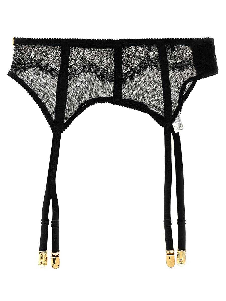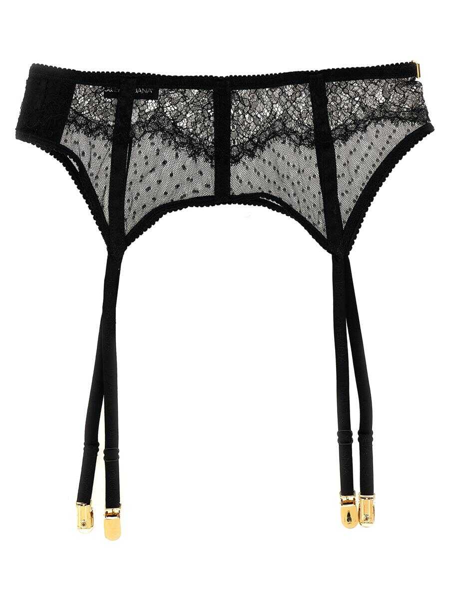 Lace garters with logoed metal plaques