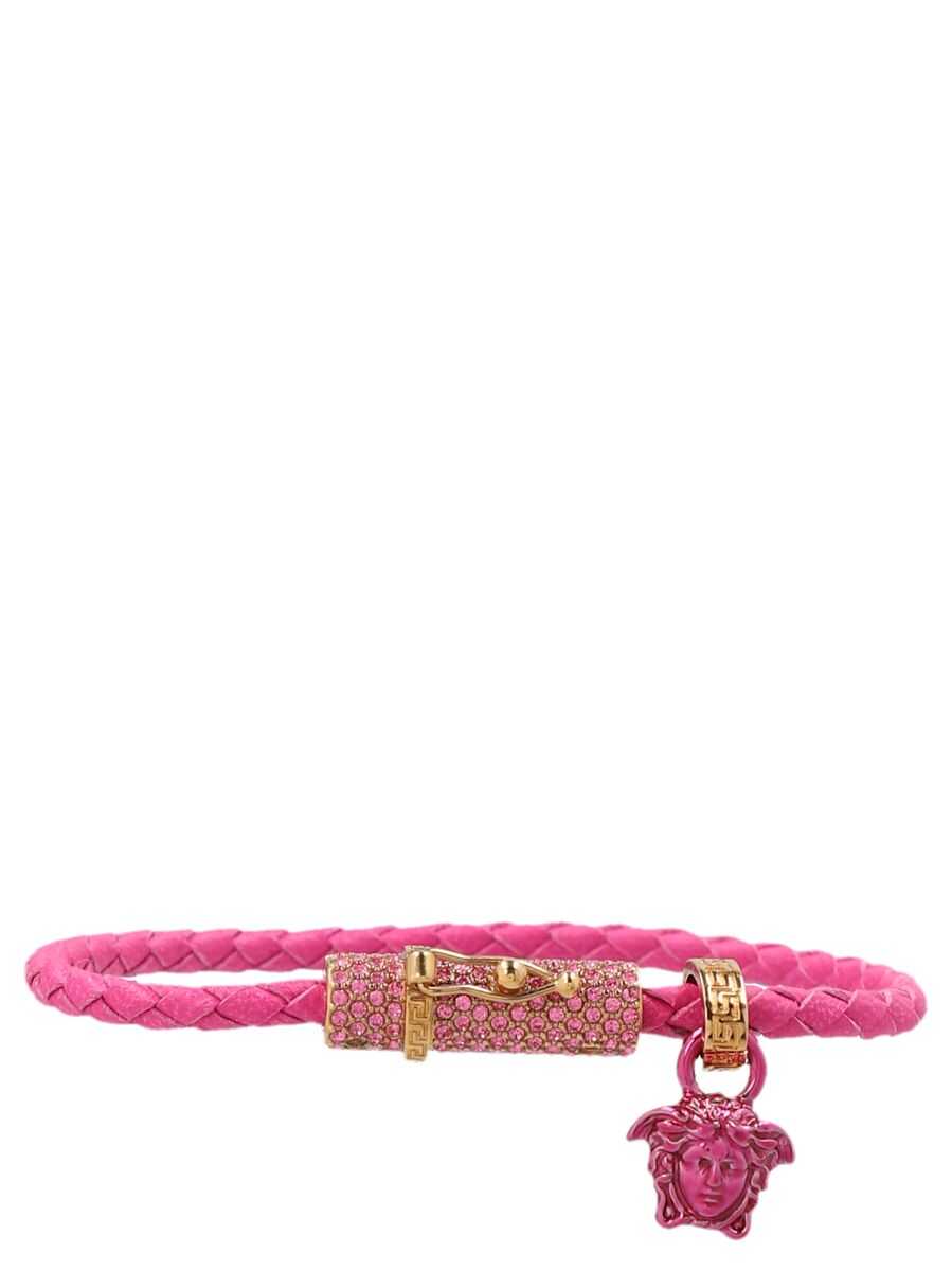 'Medusa' plaited leather bracelet with Medusa pendant and closure embellished with crystals