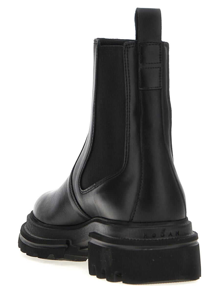 'H674' leather ankle boots with elastic ankle straps, rubber sole