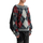 The Y/Project diamond pattern sweater is characterized by extendable inserts with zippers along the sleeves. It has an oversized fit with a V-neck and adjustable hood, finished with ribbed edges. The model is 187 cm tall and wears size M.