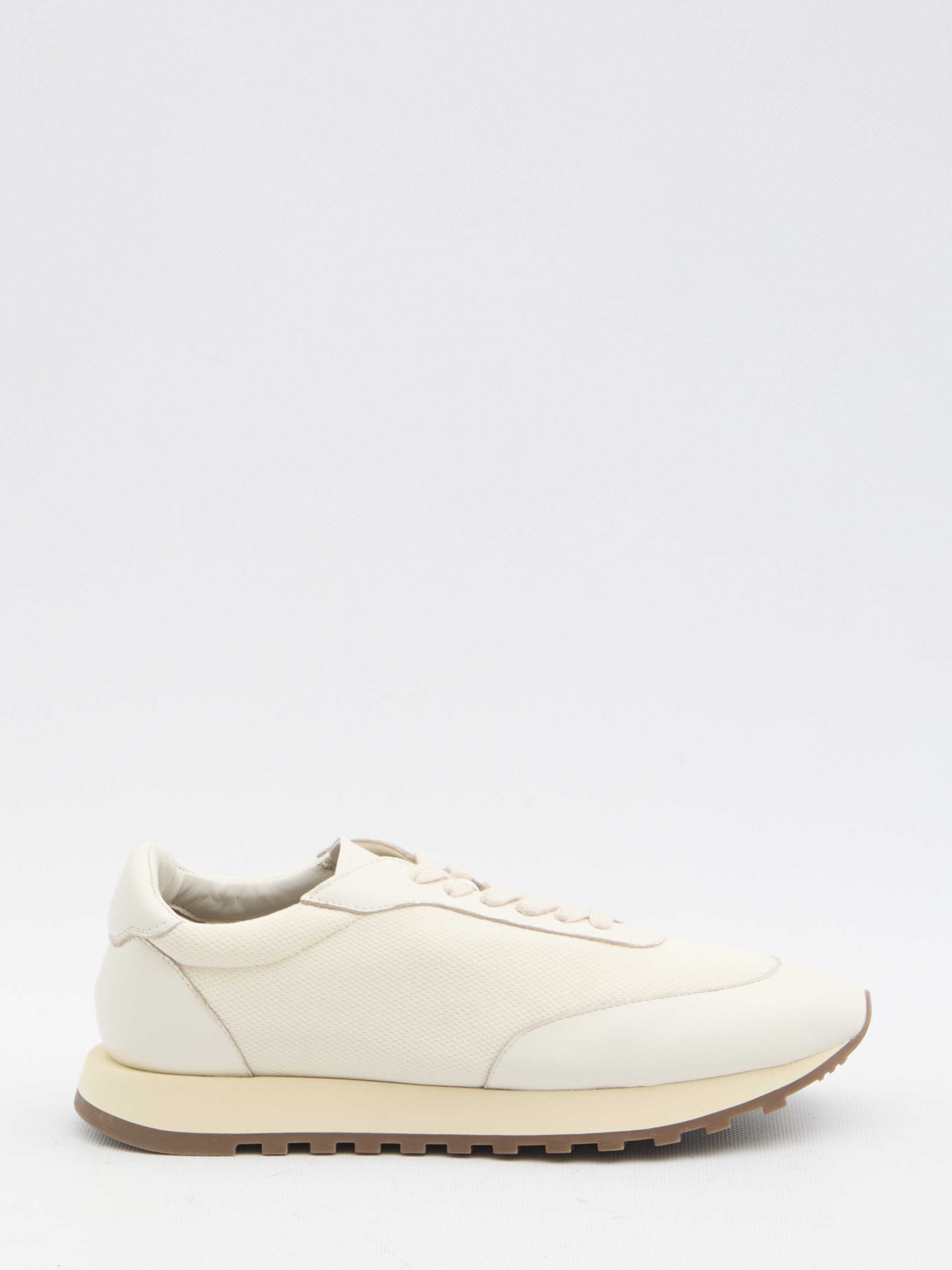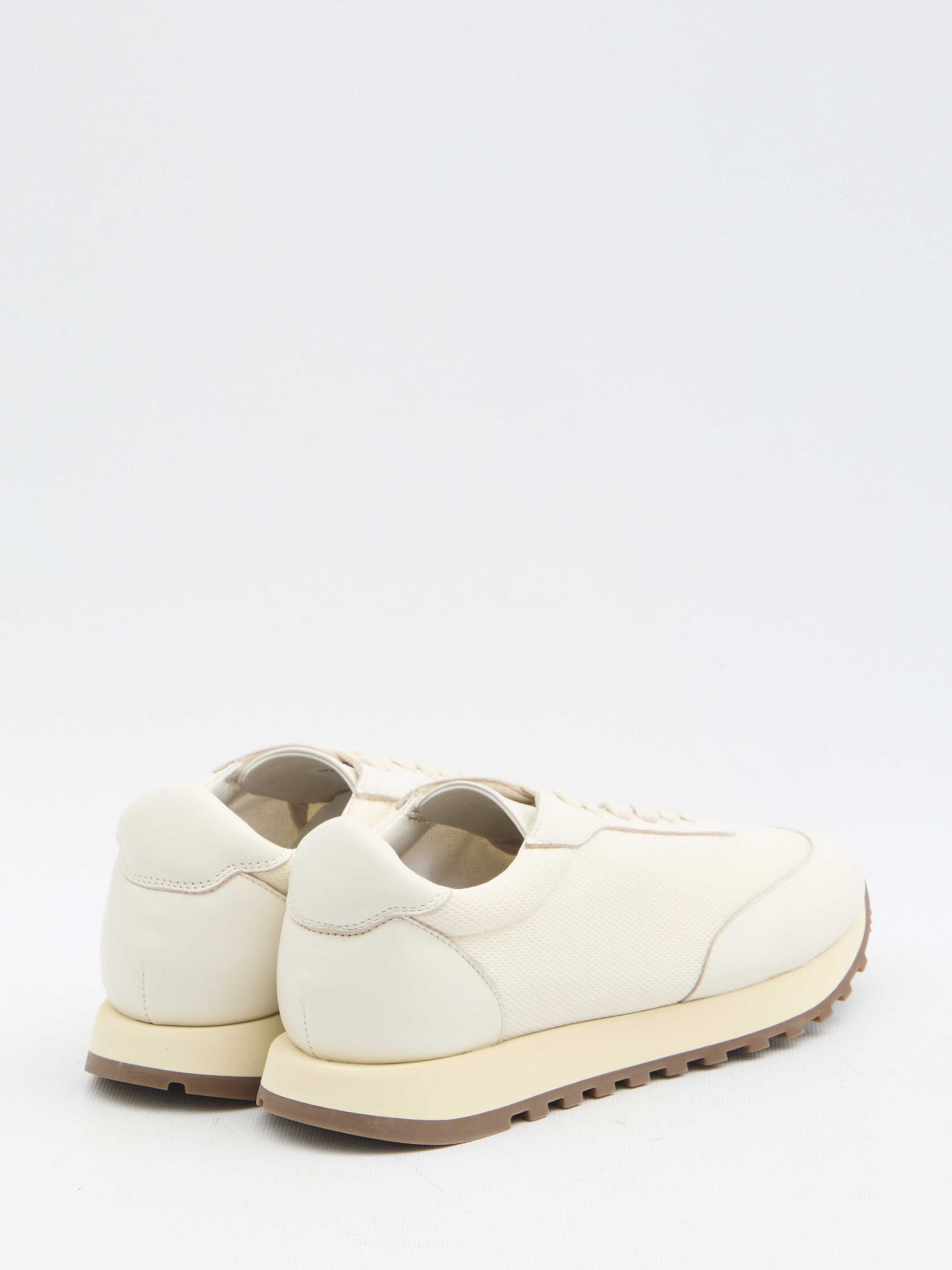 Owen Runner sneakers in soft technical nylon mesh with nappa trims in the shades of white and milk. They feature lace-up closure, microrubber tread and rubber sole. Dust bag included. Any leather imperfections are not to be considered manufacturing defects, but a peculiarity of the material.