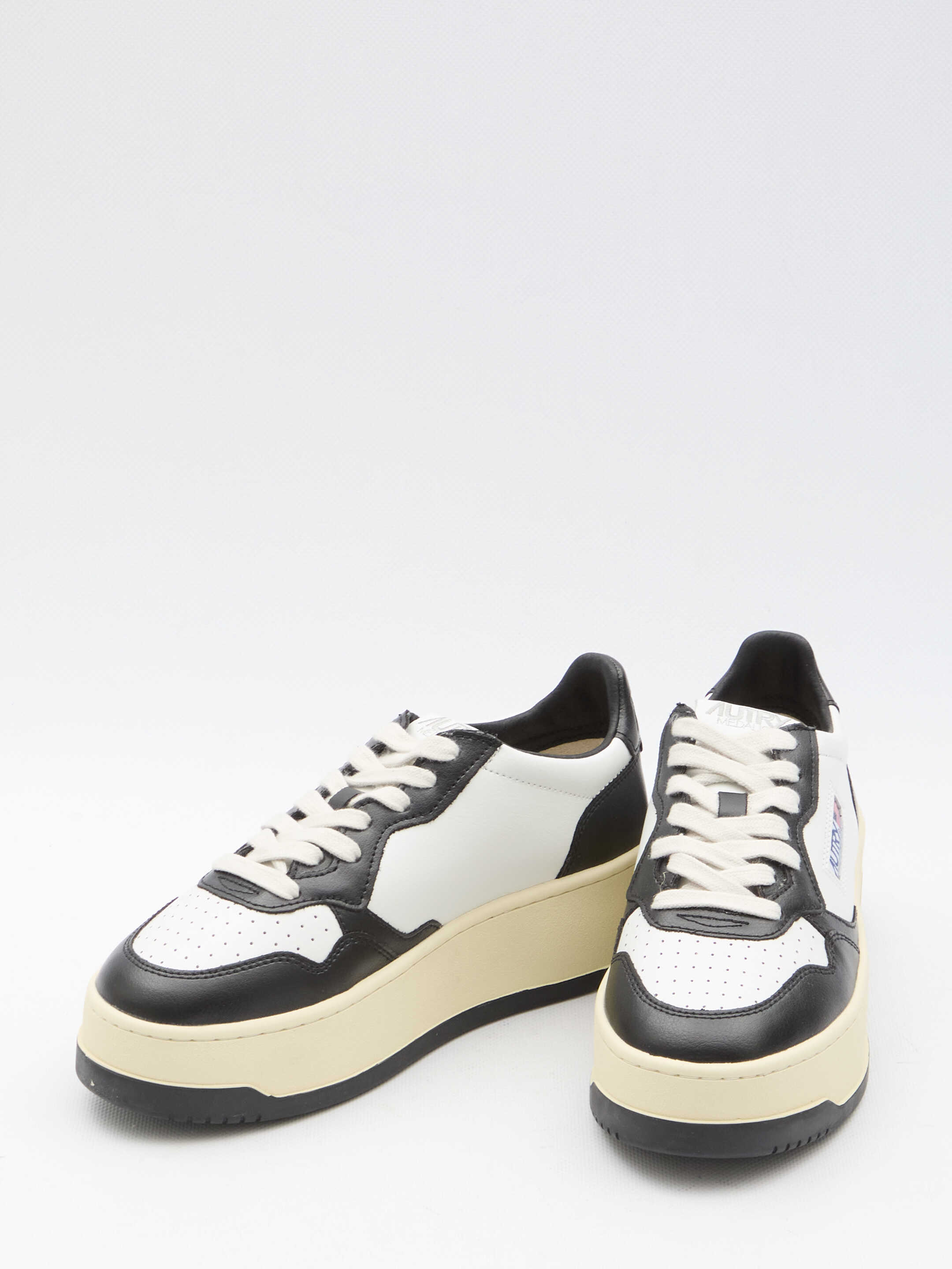 Medalist Platform Low sneakers in white and black leather with black leather heel. They feature round and perforated toe, lace-up closure, Autry logo on tongue, on the side and on the back and platform rubber heel. Any leather imperfections are not to be considered manufacturing defects, but a peculiarity of the material.
