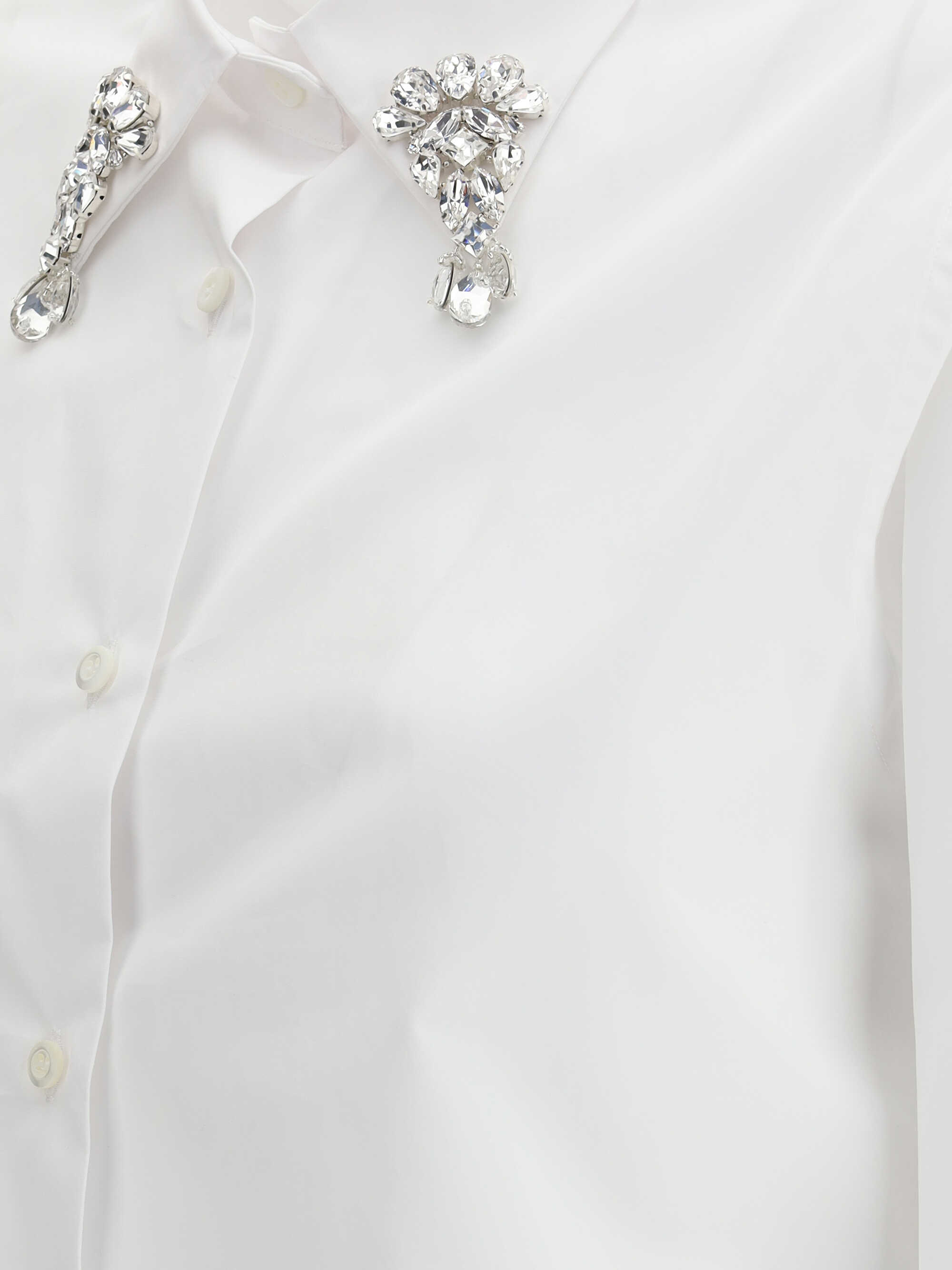 Cotton Shirt by Prada featuring a classic collar, a front button closure, a cropped style, an appliqued shiny jewel detail on the collar, a monochrome pattern, and a regular fit.