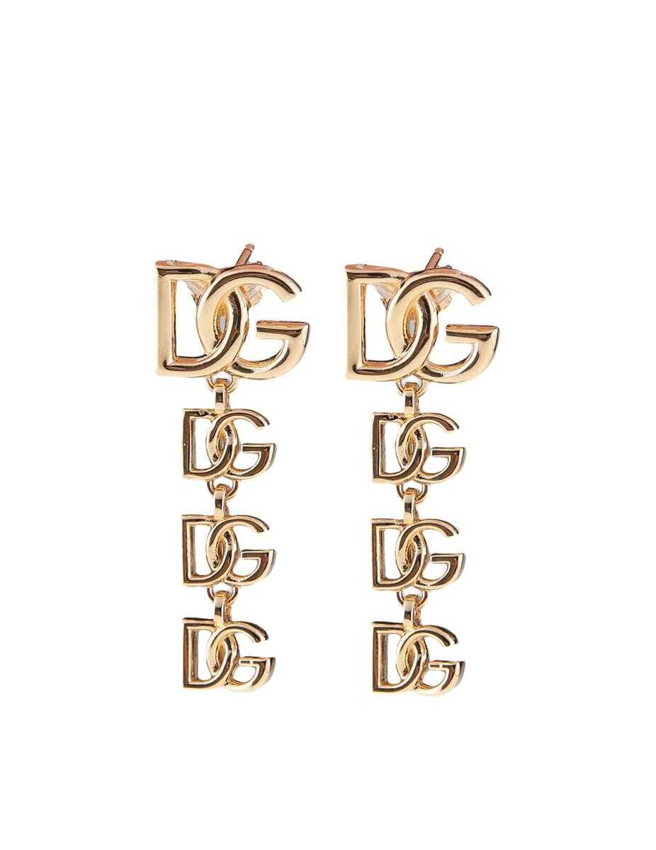 Drop earrings with DG logo Colour gold Gold plated brass Nickel free Clip closure Height 3 cm Hypoallergenic and nickel free materials Engraved logo