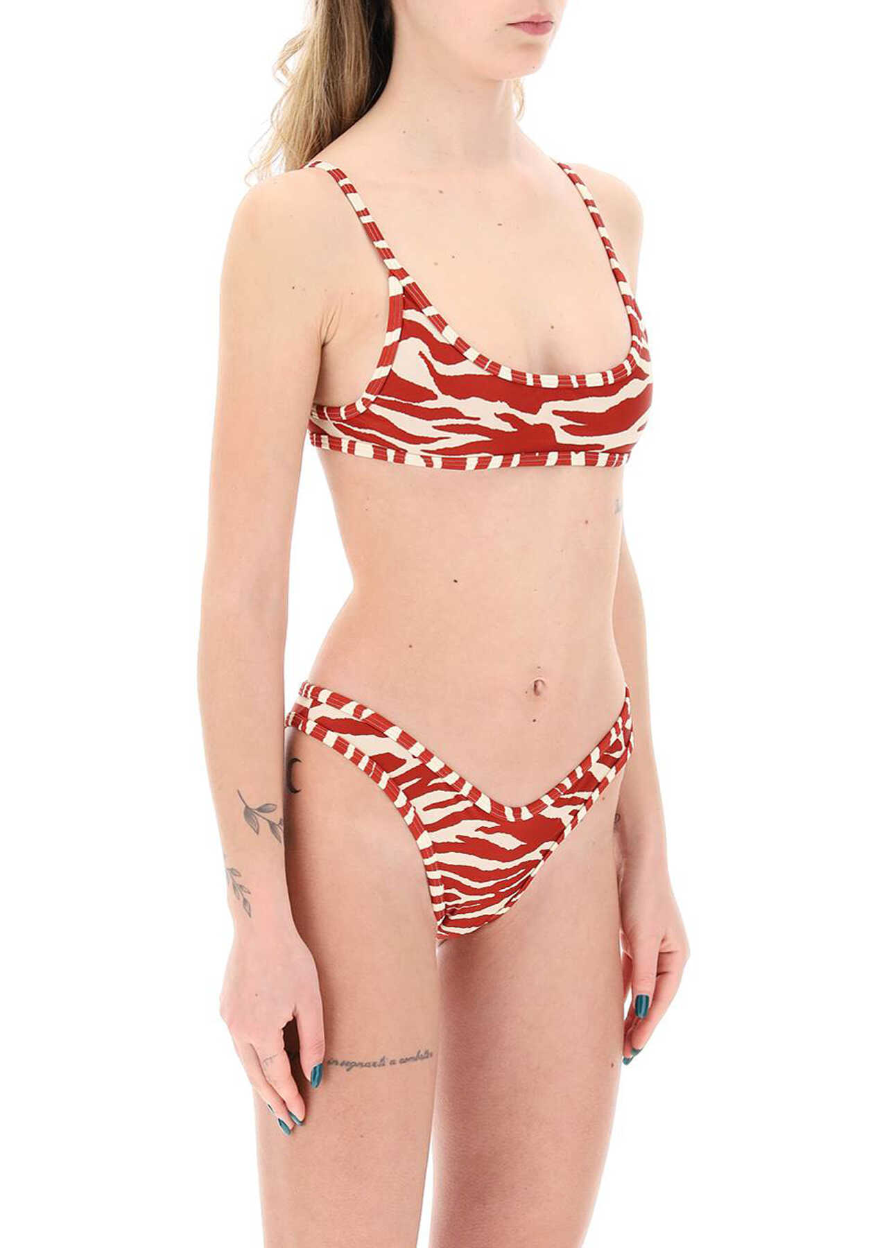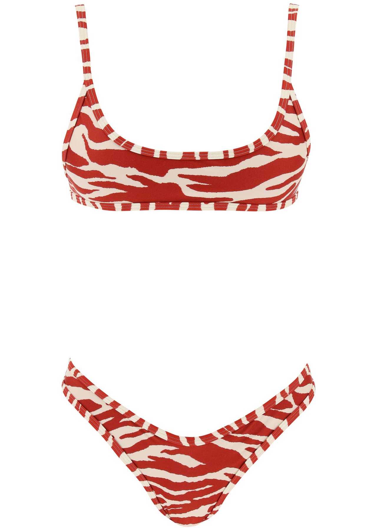 This lycra bikini set from The Attico is decorated with an all-over zebra print. It includes a top with a wide round neckline and back closure with ties, as well as a high-cut bottom, both fully lined for comfort.