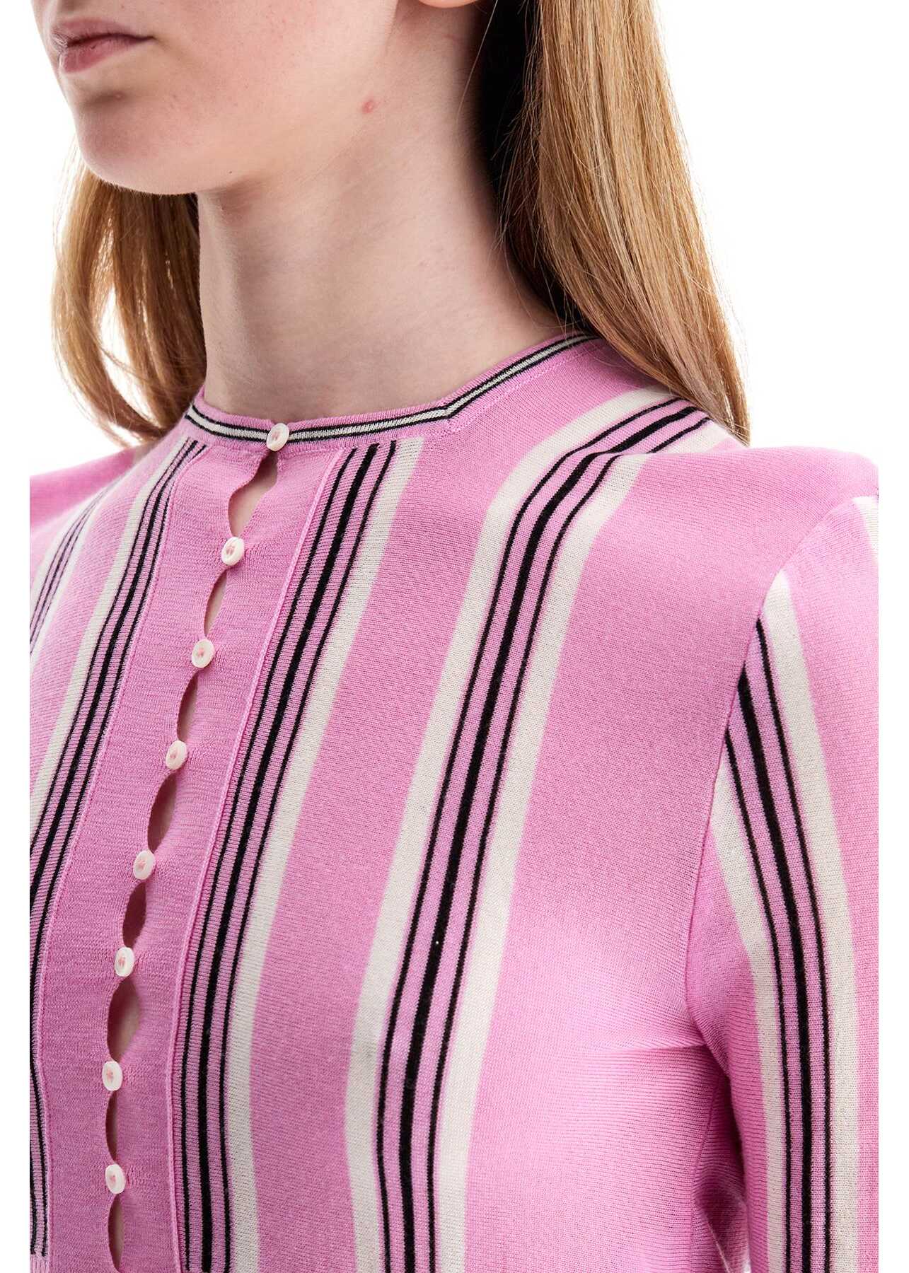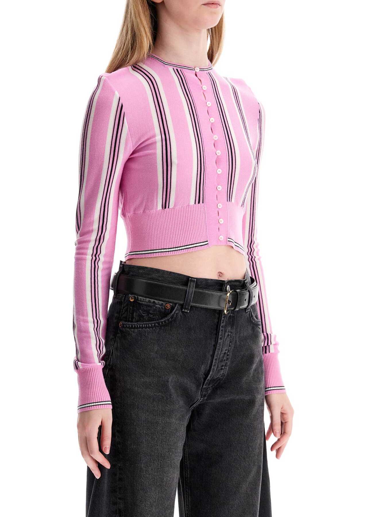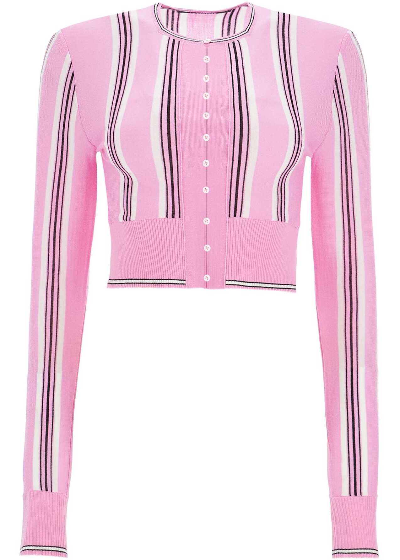 This Jacquemus cardigan is made from a thin blend of wool with an all-over striped pattern. It features a short and fitted cut, complete with a square neckline. The front has button closures and ribbed finishes, and it is signed with the Fisherman logo label at the back of the neck. The model is 177 cm tall and wears a size FR 36.