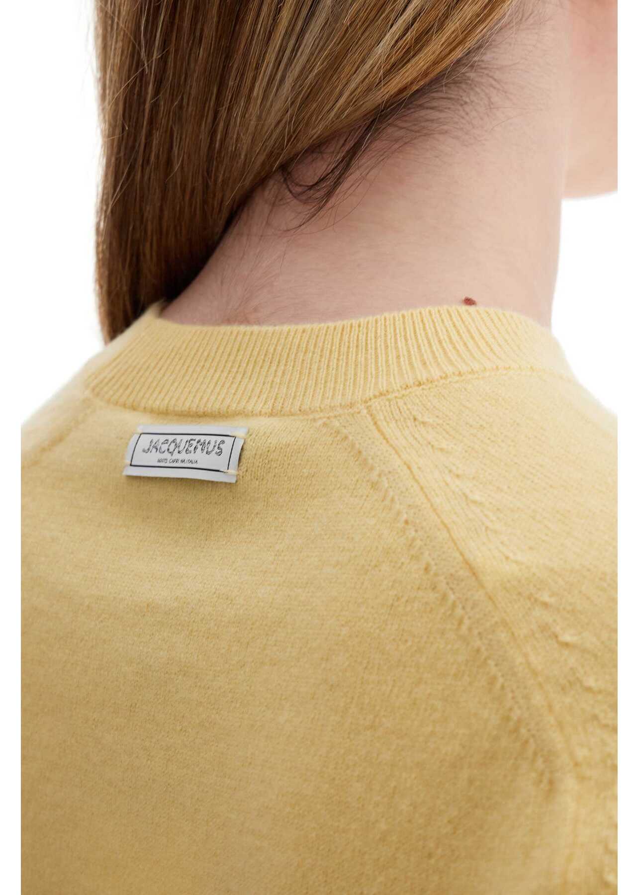 This Jacquemus pullover is made from a soft blend of cashmere yarn, with a fitted cropped silhouette. It features a round neckline, saddle sleeves, and ribbed finishes. The contrasting trim at the hem adds a touch of detail, while the logo label on the back collar adds a signature touch. The model is 177 cm tall and wears a size FR 36.