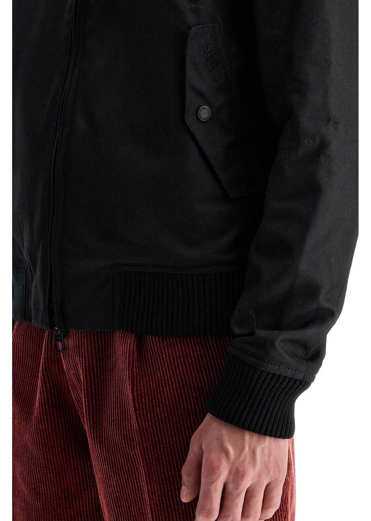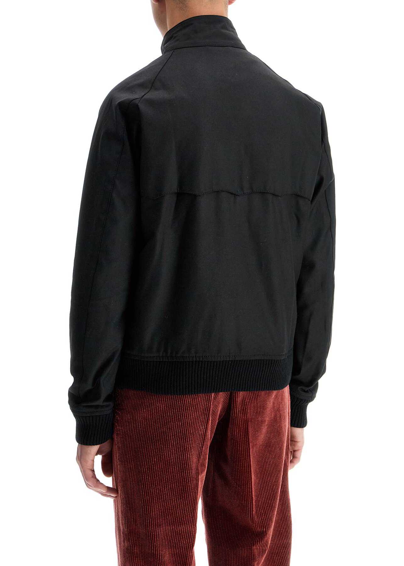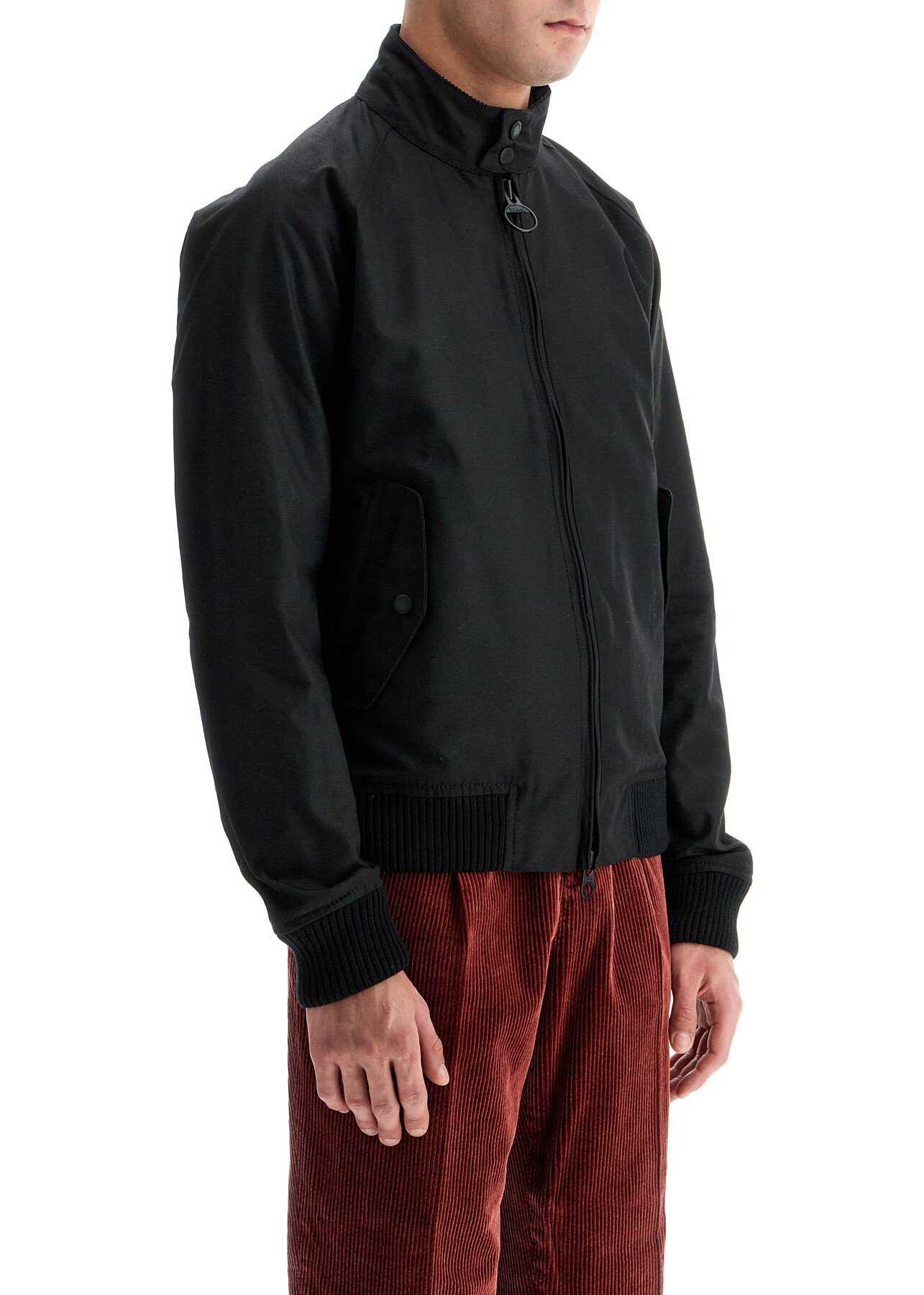 This Barbour x Baracuta bomber jacket is made of waxed cotton canvas, with a patchwork effect tartan fabric lining and ribbed knit edges. It features a stand-up collar lined in corduroy, a double zip closure, raglan sleeves, and flap pockets with snap buttons. The classic and regular fit is finished with metal ventilation eyelets under the arms and an inner pocket. The model is 182 cm tall and wears a size M.