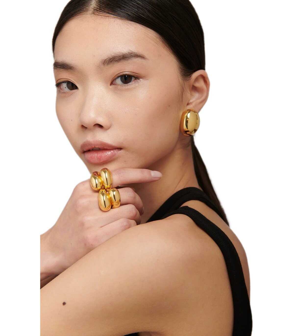 Isa earrings by Federica Tosi made of bronze and yellow gold. Characterized by a round button shape, they have a finish in bronze plated with 18k gold. Clip closure. Size: length 3 cm, width 2 cm. Composition: bronze.