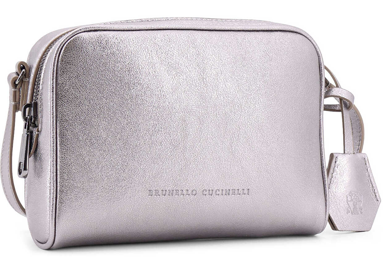 Laminated leather shoulder bag with engraved logo on the front