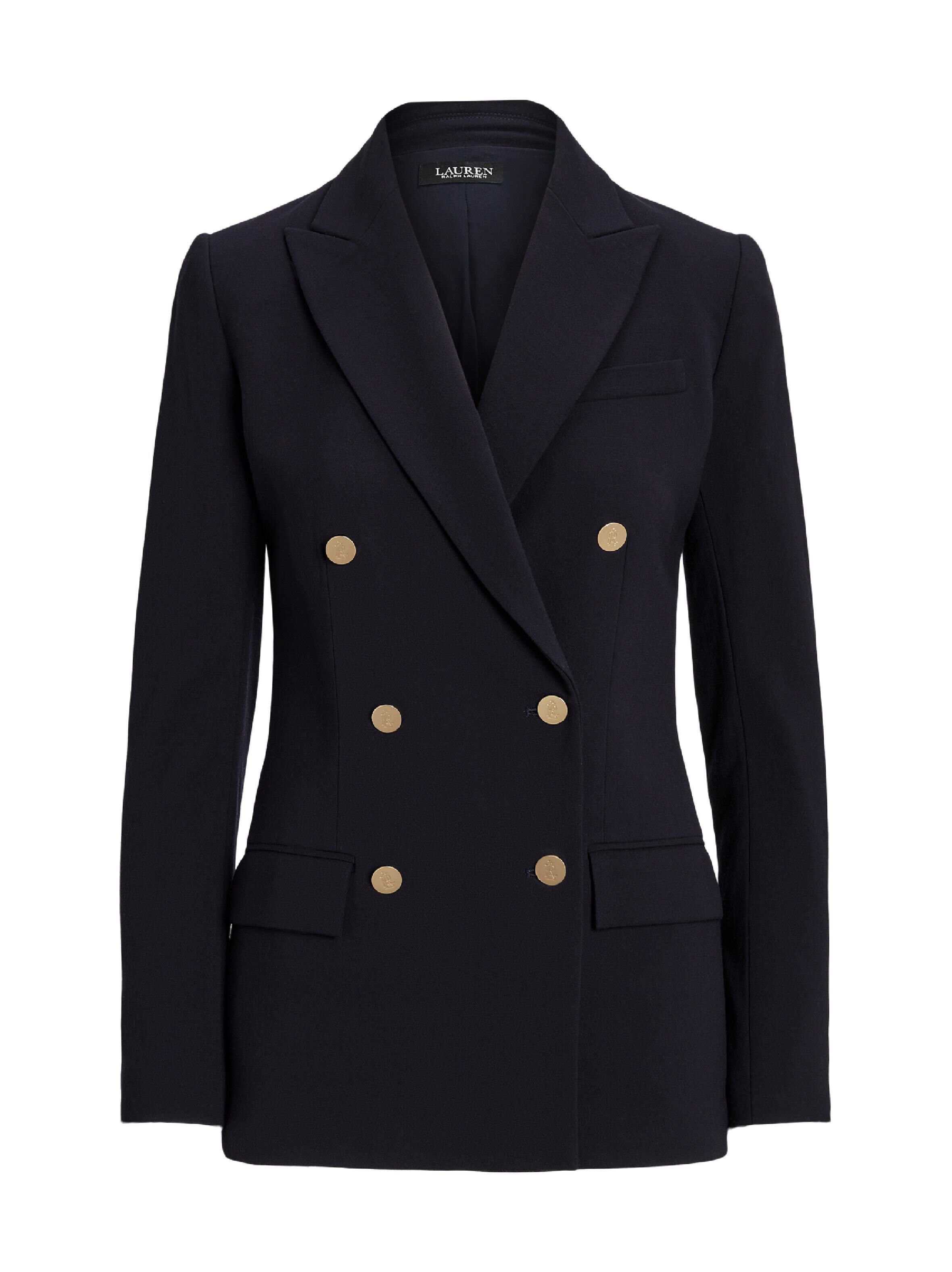 "LAUREN RALPH LAUREN jacket with peak lapels. Double-breasted silhouette. Long sleeves with four buttons at the cuffs. Padded shoulders. Two flap pockets at the front waist. Welt pocket on the left side of the chest. Pleats at the front waist. Princess seams at the front and back. Fully lined.