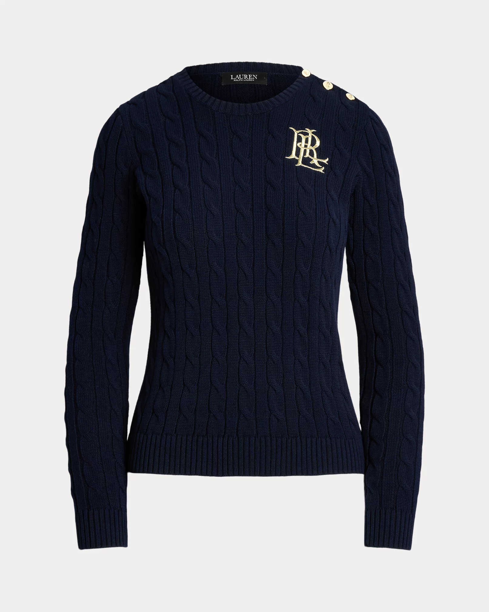 Cotton pullover by LAUREN RALPH LAUREN with braided work, shoulder buttons, sewn logo detail on the chest, ribbed edges.
