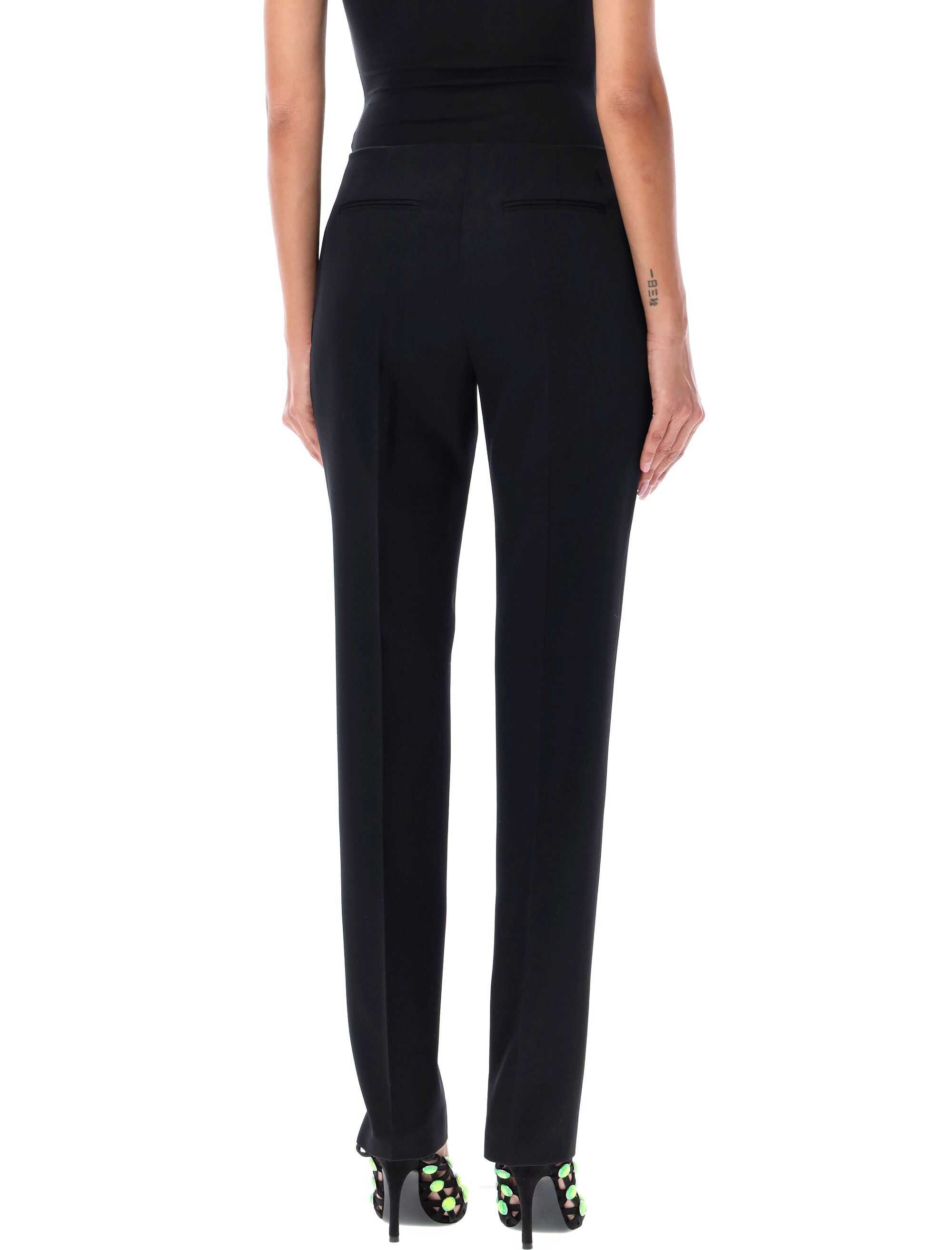 Elevate your style with these chic black slim pants from THE ATTICO. Made from luxurious 100% virgin wool, these pants feature a tailored fit, high-waisted design, and a clean, minimalist look. Perfect for day or night, these pants will be your go-to for any occasion. Get yours now and step out in style!