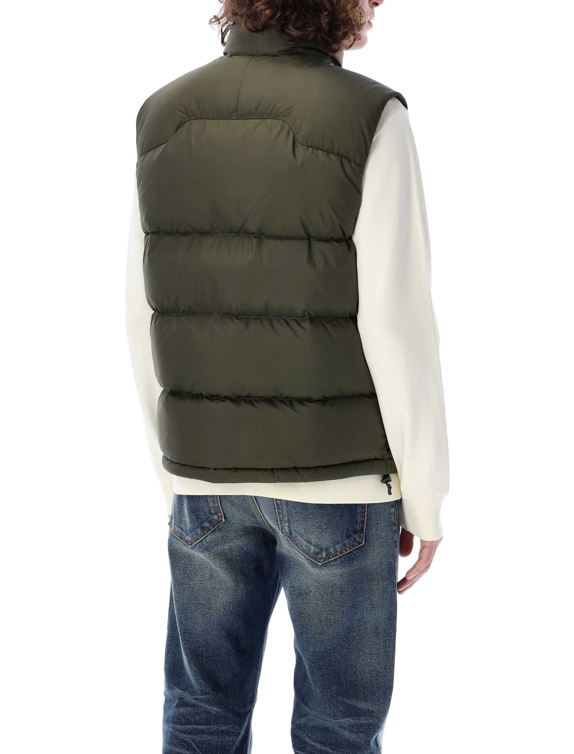 Stay warm and stylish with this Olive Puffer Vest by Ralph Lauren. Made from 100% recycled polyester, this vest features a regular fit, quilted down fabric, stand-up collar, and multiple zip pockets for convenience. Perfect for layering over any outfit, this vest is a must-have for the colder months ahead.