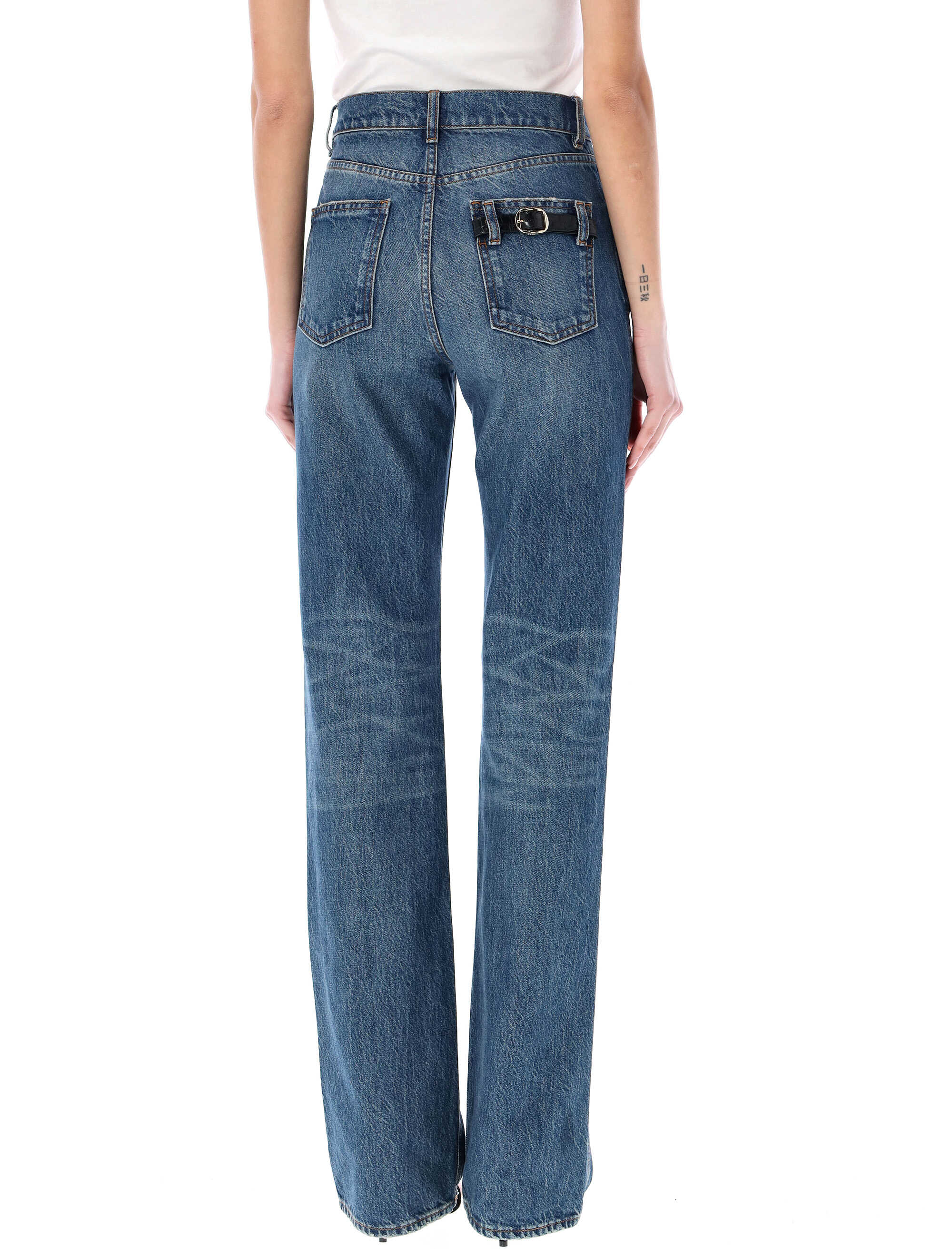 Elevate your style with these stunning blue denim pants by COPERNI. Made with high-quality 100% cotton material, these straight leg pants feature a stretch fit, high waist, and chic belt detail. Perfect for any occasion, these pants will make you stand out from the crowd. Order yours now and experience the ultimate blend of comfort and style!