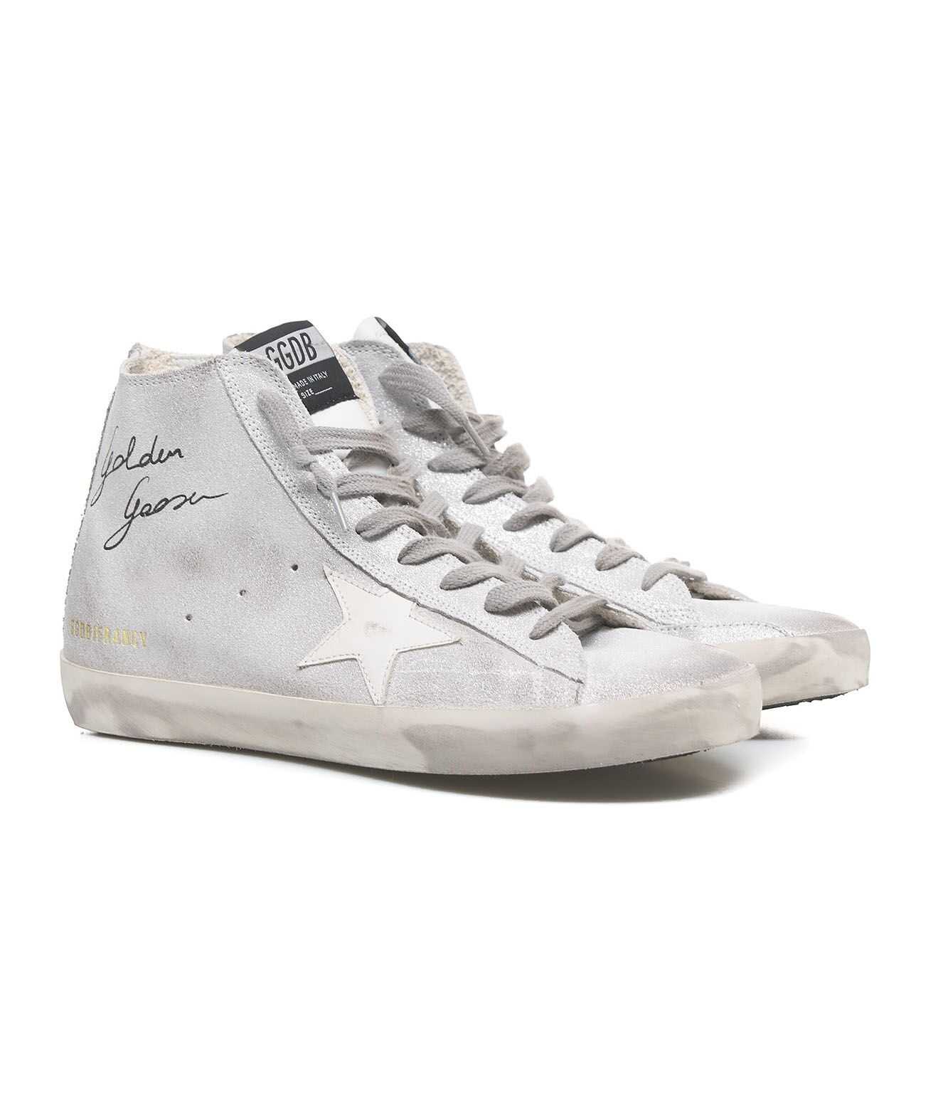Step up your style game with these White High Top Sneakers from GOLDEN GOOSE. Made with leather and a rubber sole, these sneakers are perfect for any casual or sporty outfit. With a classic design and unique details, you'll stand out in the crowd. Don't miss out on these must-have shoes!