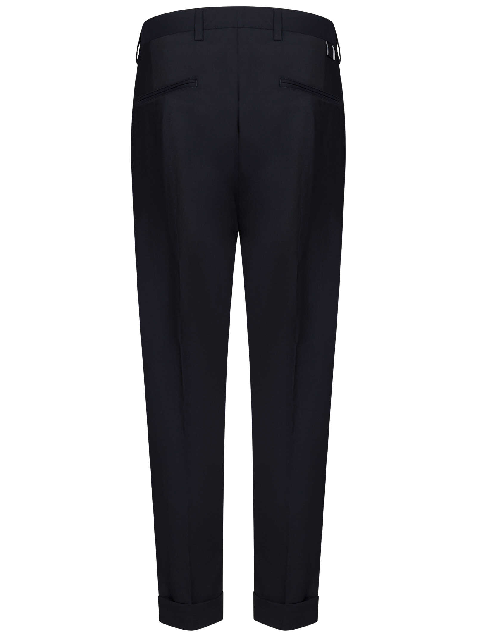 COOPER T1.7 cropped slim fit trousers in navy blue wool blend.