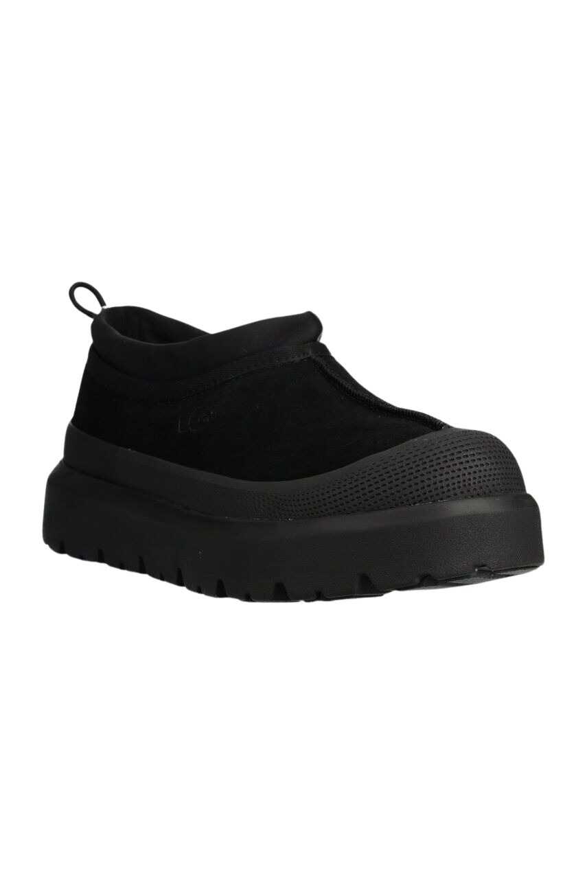Waterproof UGG slip-on made of suede with sealed seams. The UGGplush™ lining, made of regenerated wool and TENCEL™ lyocell, ensures warmth and softness, while the innovative EVA sole derived from sugarcane and the Spider Rubber® inserts offer exceptional traction and durability. Perfect for light to moderate rain and light snow, these shoes are a must-have for any outdoor adventure.