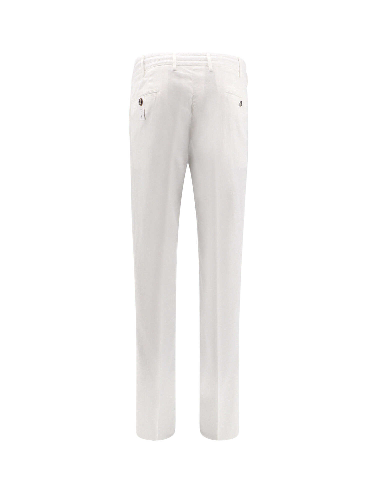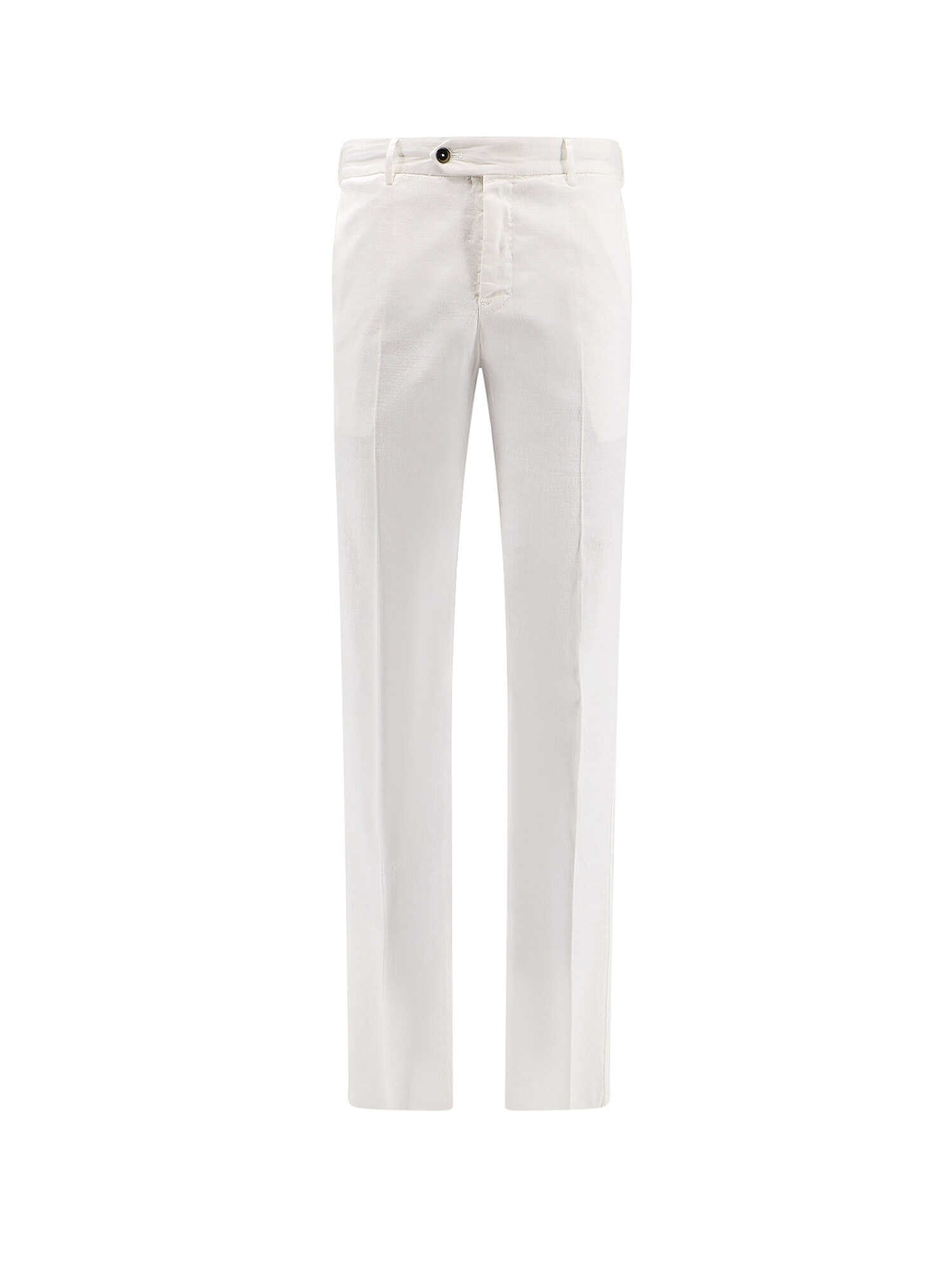 Closure with button and zip, Lateral slant pockets, Back welt pockets with button, Slim fit, 64% linen 34% cotton 2% elastane