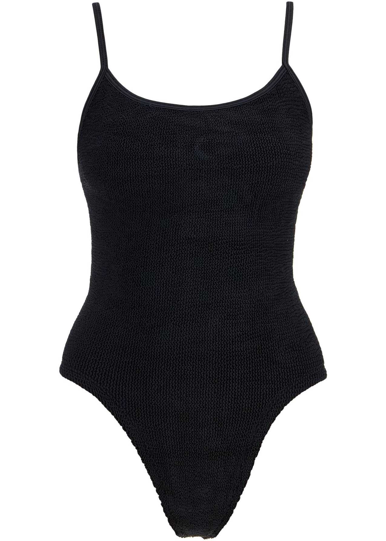 The Petra one-piece swimsuit by Hunza G is inspired by the '90s and made with the iconic Original Crinkle&trade fabric. It features thin straps and a high-cut leg design. The model is 177 cm tall and wears a one-size-fits-all.