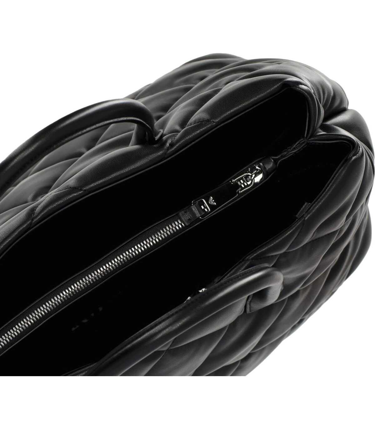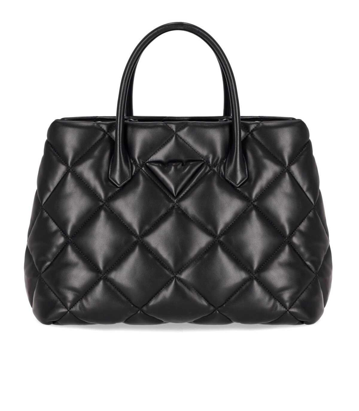 Handbag by Emporio Armani, made of quilted nappa-effect material in black. Characterized by double handles, it features a zip closure. Adorned on the front with a graphic eagle logo, it has an adjustable and removable chain shoulder strap. Internally lined with two open compartments, it is equipped with a zip closure and two flap pockets. Measurements: 20x12x8 cm.