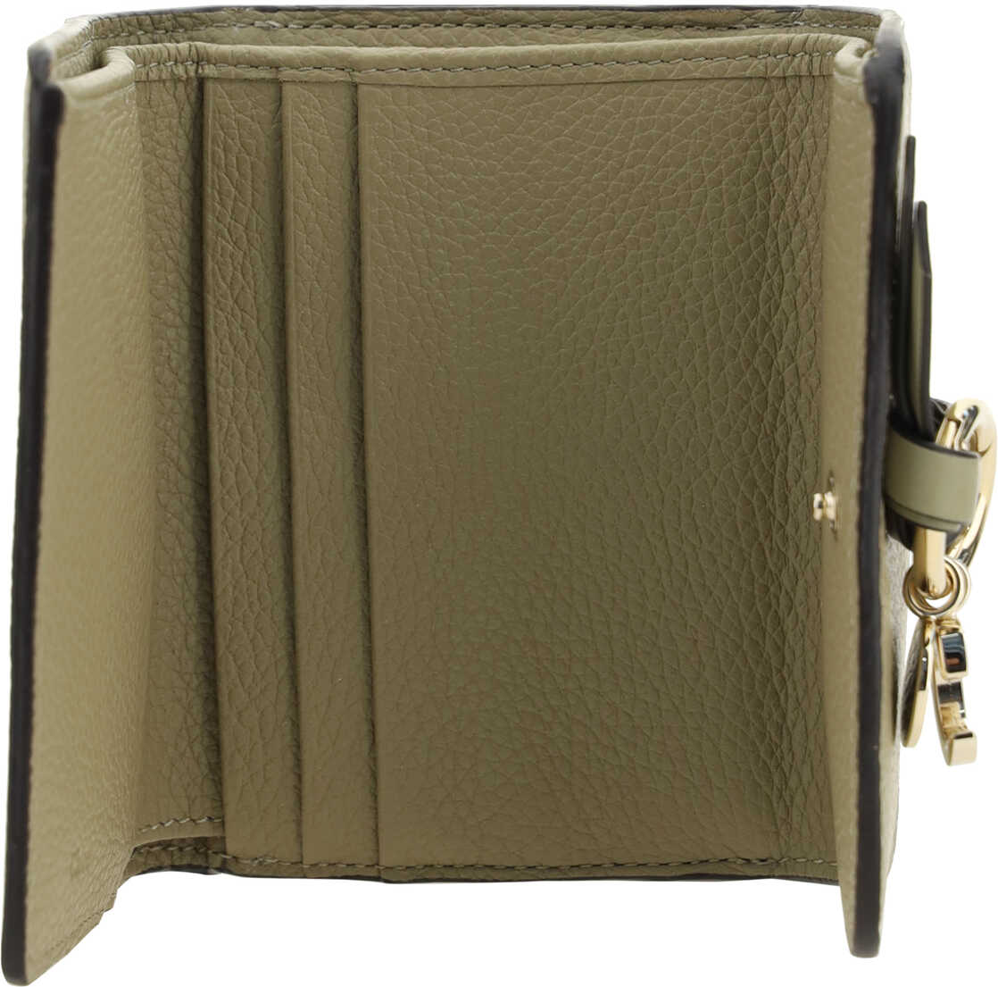 Calfskin Alphabet Wallet by Chloé, snap-button opening, interior card slots, bill compartment, iconic brand Charms applied on front.