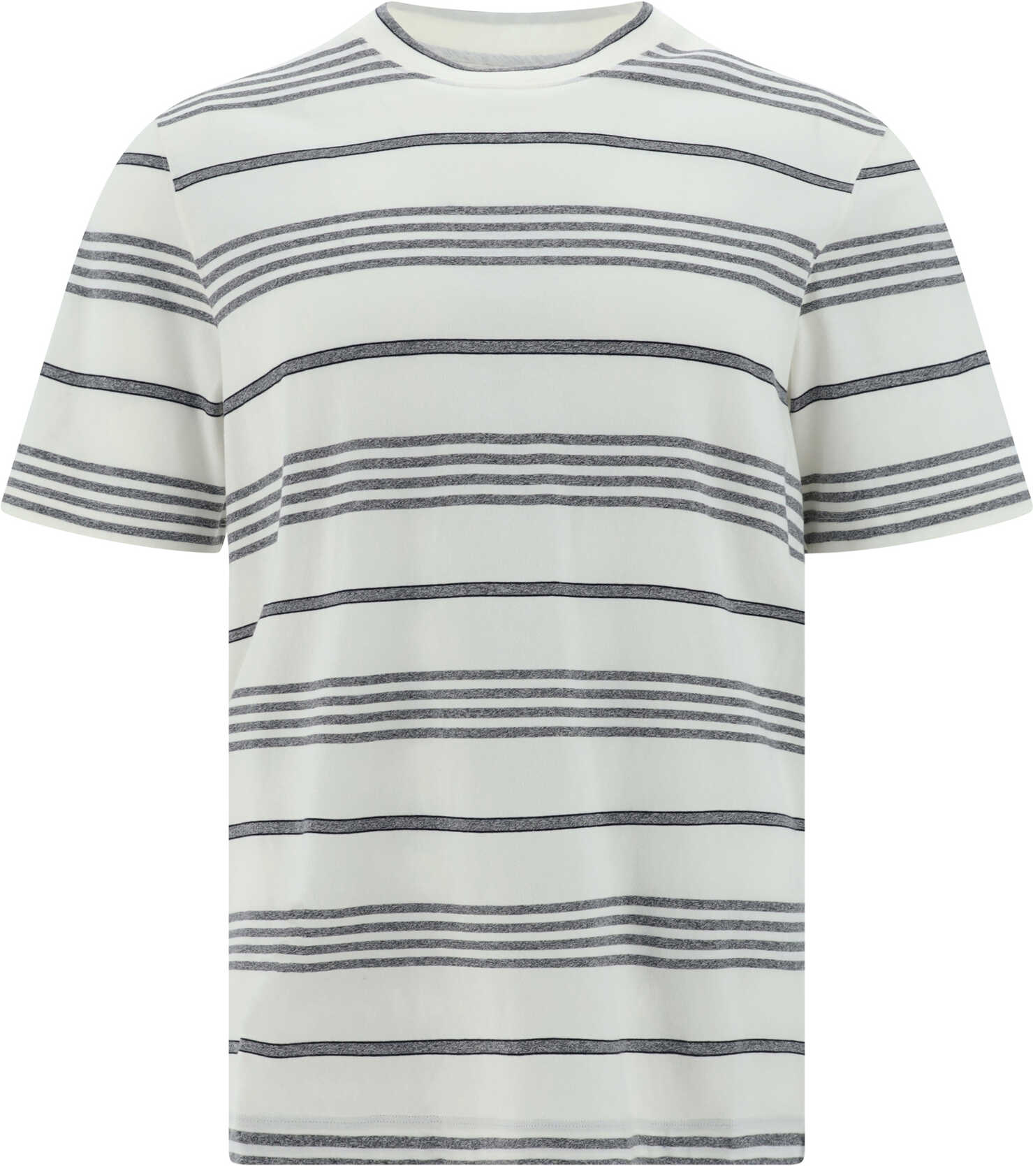 Cotton T-Shirt from Brunello Cucinelli, ribbed crew neck, two-tone striped pattern, regular fit.
